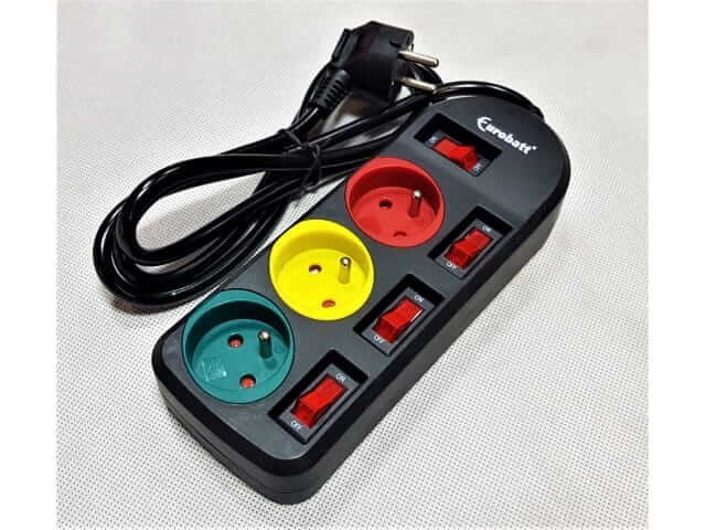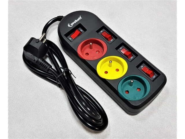 Všetky 3 zásuvky možno zapnúť/vypnúť samostatným spínačom, takže nebudú zbytočne fungovať, alebo pomocou hlavného spínača možno vypnúť celý rozdeľovač.