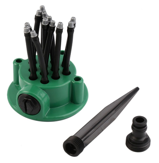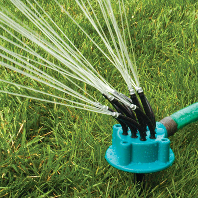Vďaka 360 ° otočnej zavlažovacej hlave už nemusíte behať po záhrade s hadicou alebo kupovať drahé zavlažovače. Striekacia hlava má 12 samostatných flexibilných malých trubíc, cez ktoré strieka voda. Môžete ich nastaviť podľa svojich predstáv, takže je zaručené, že sa voda dostane všade. Na zabodnutie do trávy môžete použiť plastový bodák a potom stačí len pripojiť rýchlospojku hadice a pustiť vodu.