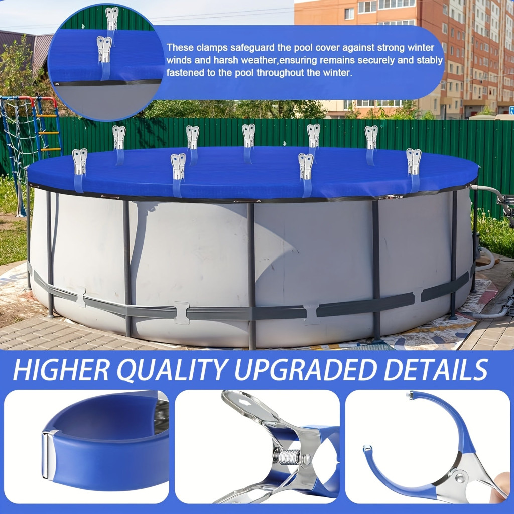 (Dlhá životnosť) Spony vyrobené z nehrdzavejúcej ocele nekorodujú a zachovávajú si svoj pôvodný stav v akomkoľvek prostredí. Vďaka ich ľahkému použitiu môžete rýchlo a jednoducho upevniť kryt bazéna. Ideálna voľba pre domáce aj profesionálne použitie, pretože kvalita a funkčnosť idú ruka v ruke.