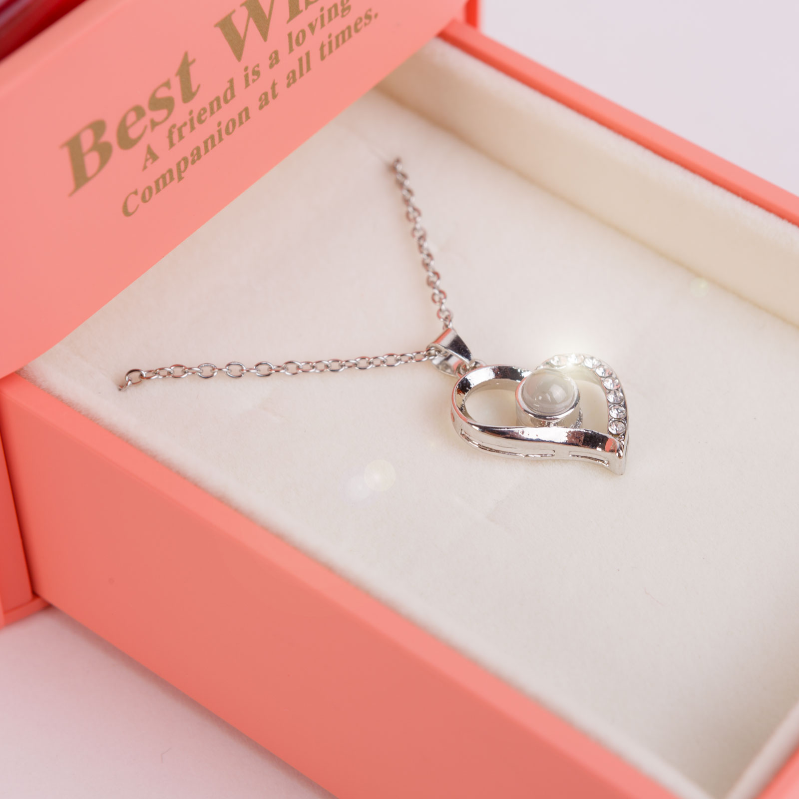 Táto elegantná darčeková sada je dokonalou voľbou na špeciálne príležitosti, ako sú výročia, narodeniny, Valentín alebo Vianoce. Balenie obsahuje 9 večných ruží a náhrdelník s príveskom. Nápis „Best Wishes“ na vrchnáku dodáva darčeku osobitý význam. Spodná časť krabičky môže byť použitá ako praktický úložný priestor. Darujte trvalú spomienku, ktorá vždy vyčarí úsmev na tvári obdarovaného!