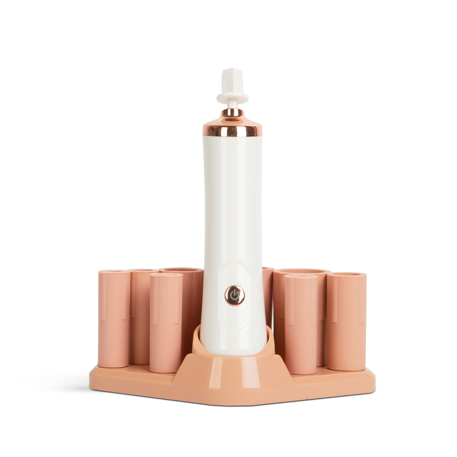 Toto automatické zariadenie na čistenie a sušenie make-upu štetcov pomáha udržiavať maximálnu hygienu. Je pripevnená k držiaku štetca a otáča štetcom, ktorý môže dosiahnuť rýchlosť až 7 000 otáčok za minútu, čím odstraňuje z hlavy štetca všetky nečistoty.Súprava obsahuje súpravu adaptéra, ktorá je kompatibilná s krytom čistiacej nádoby a najpopulárnejšími veľkosťami štetcov.