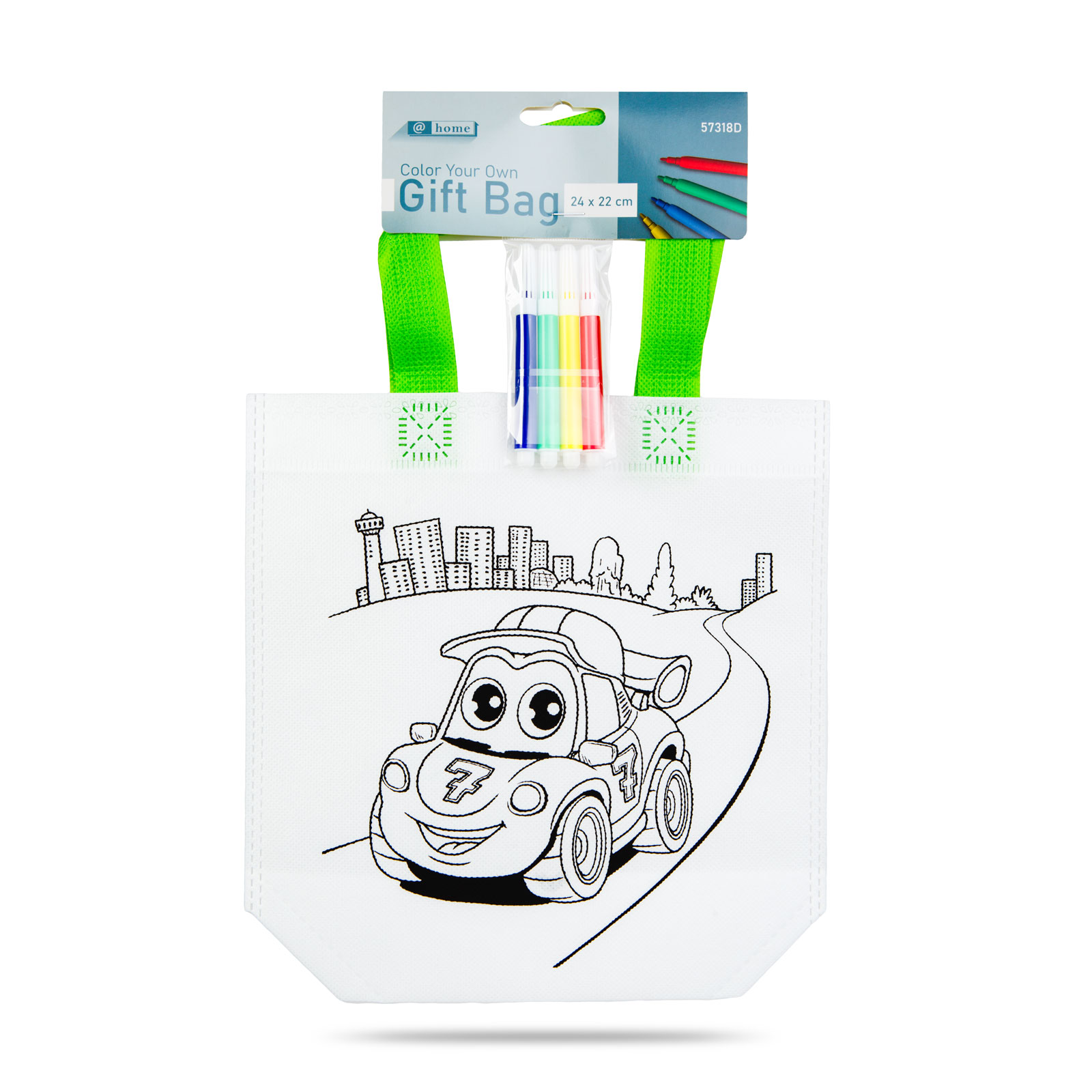 Vyfarbi si vlastnú tašku so sadou farebných fixiek! Dva v jednom: taška a kreatívna zábava pre deti. Pri vyfarbovaní vložte medzi vrstvy tašky hrubší papier, aby sa farba neotlačila na zadnú stranu.
