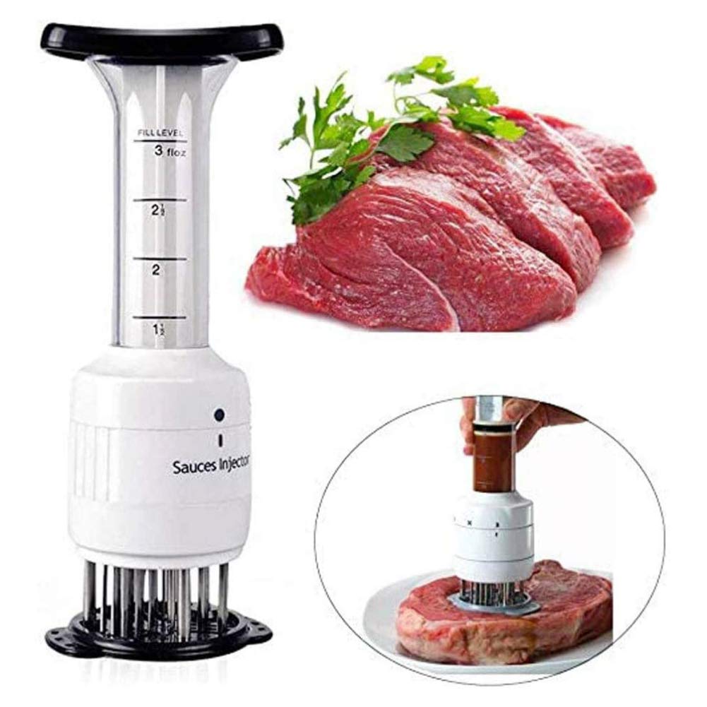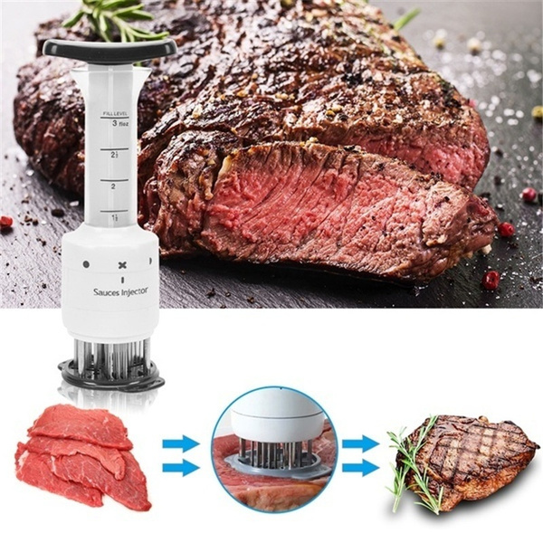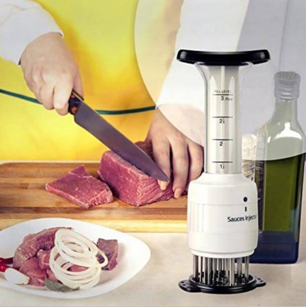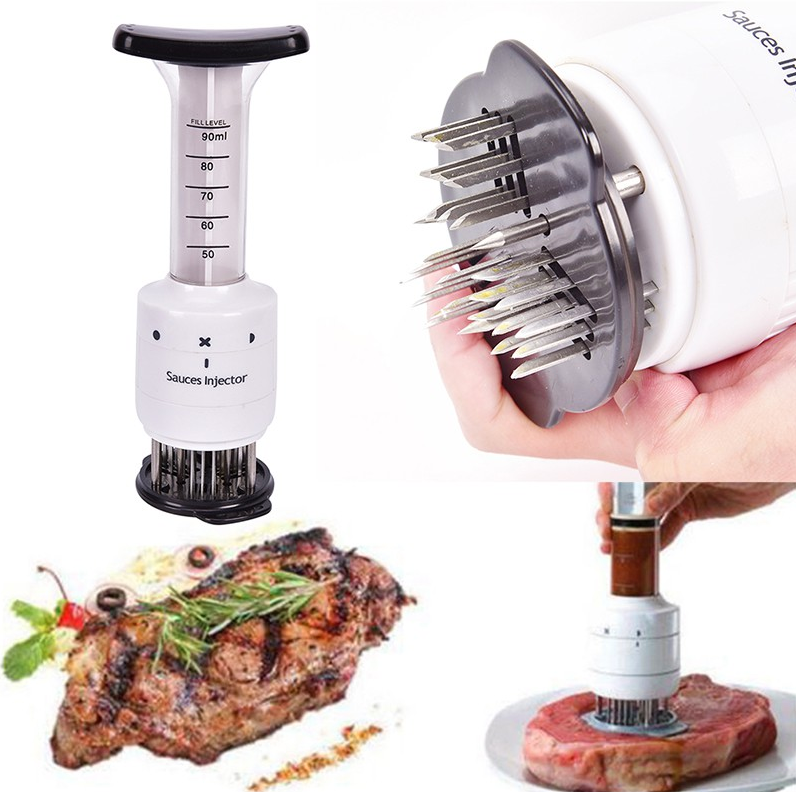 Je to veľmi praktický a užitočný nástroj, pomocou ktorého môžeme ľahko vstreknúť marinádu do mäsa, medzi vlákna mäsa.