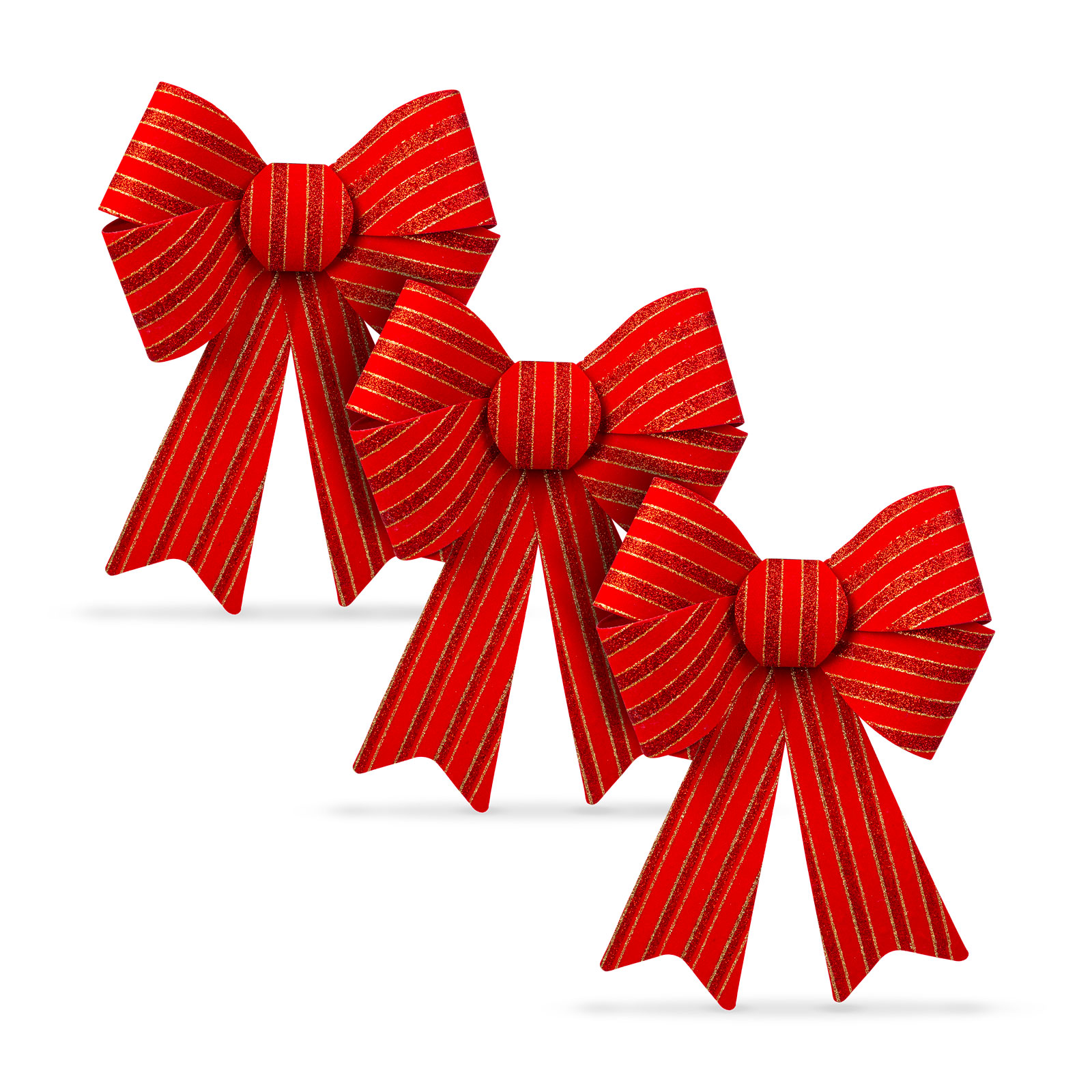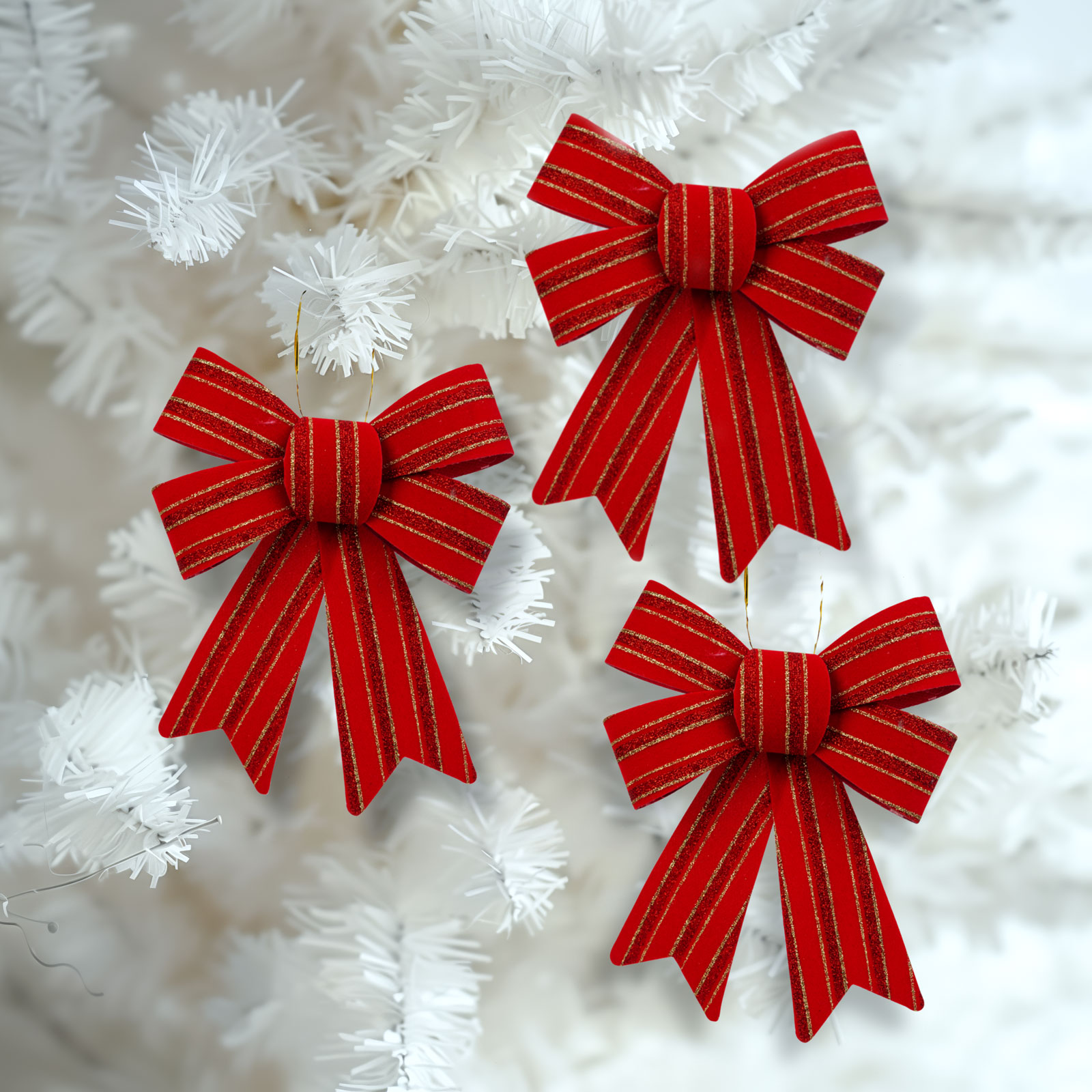 Dekoračná mašľa - glitrová, červená - 10 x 13 cm - 3 ks / balenie