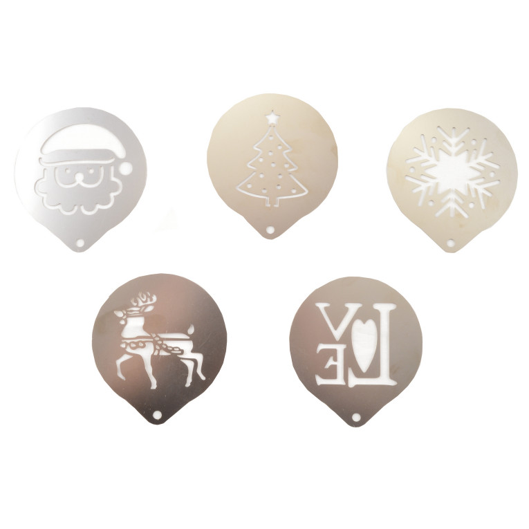 Použitie: Pripravte si kávu/cappuccino, nalejte ju do šálky, na vrch dajte šľahačku, položte šablónu na vrch šálky a posypte kakaovým práškom/škoricou, aby sa vzor zobrazil na vrchu šľahačky!