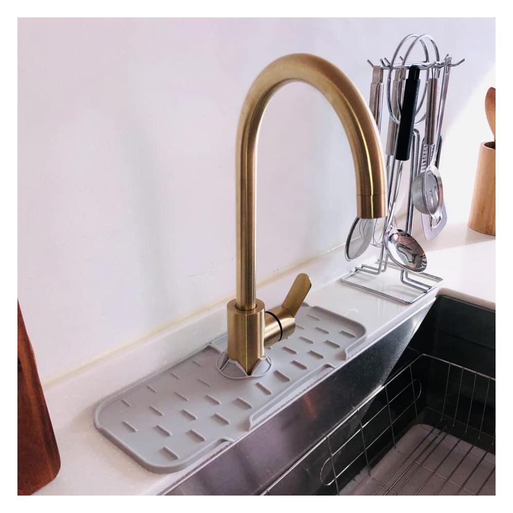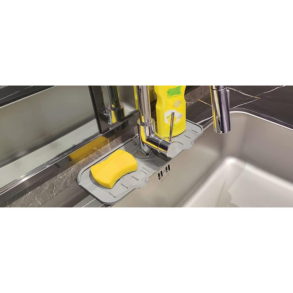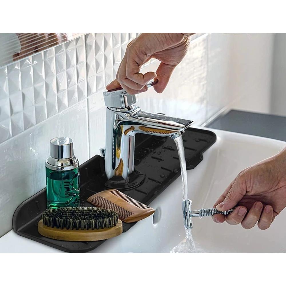 Náš produkt má špeciálny, ovinovateľný dizajn, ideálny na umiestnenie okolo vodovodnej batérie. Udržiava umývaciu plochu čistú a suchú. Okamžite absorbuje striekajúcu vodu a zabraňuje jej hromadeniu. Gumená spodná časť zabraňuje pretekaniu vody pod ňu. Uschne na vzduchu za menej než hodinu, netreba ho často čistiť, stačí niekoľko minút s čistiacim prostriedkom.