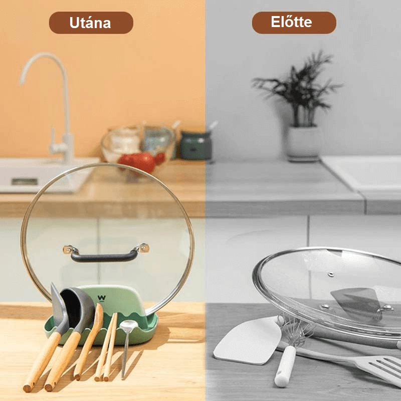 Držiak na varechy má odkvapkávaciu podložku, ktorá môže účinne zabrániť rozliatiu vody a oleja vďaka dizajnu drážky a môžete položiť viacero kuchynských pomôcok a pokrievok na hrnce, čo uľahčuje používanie.
