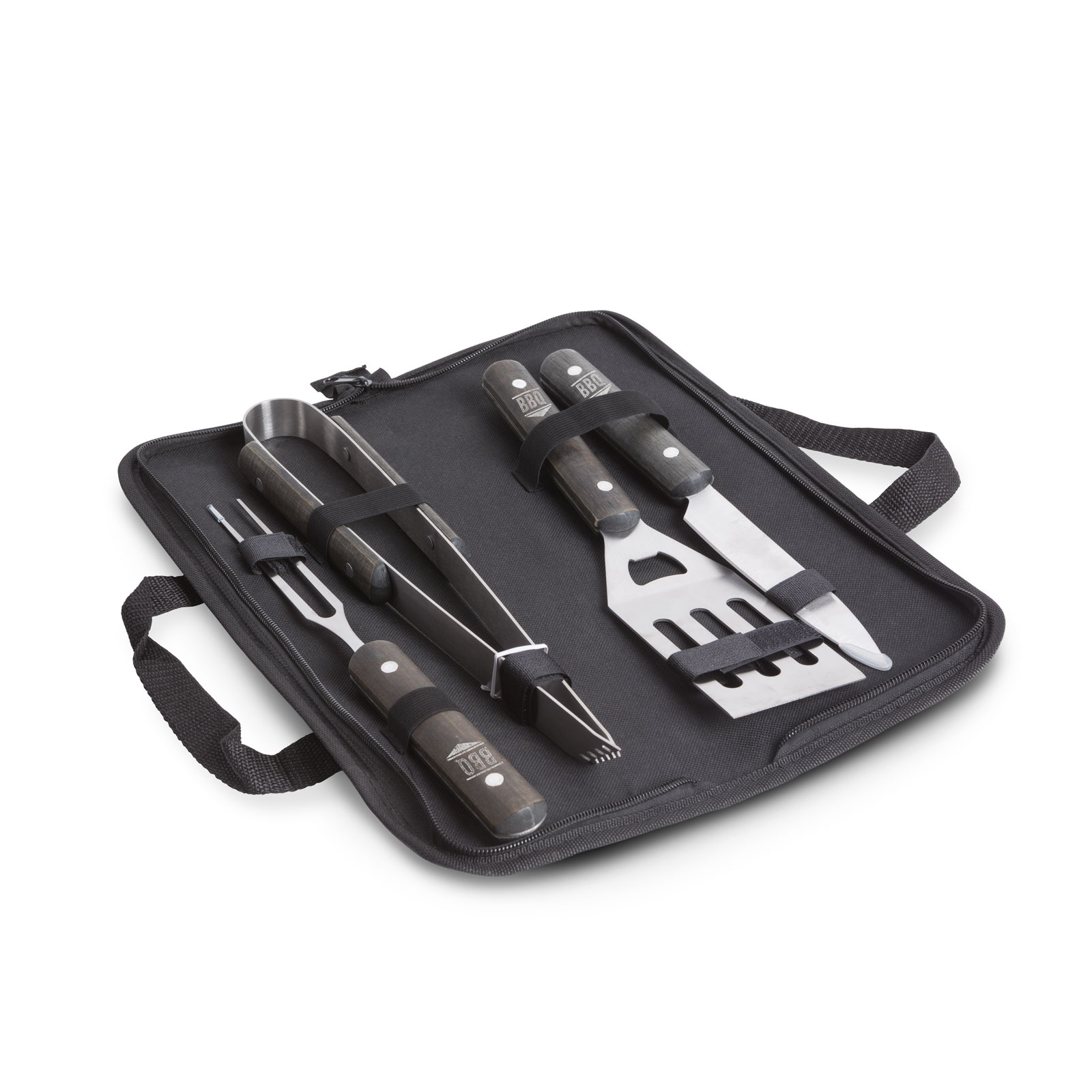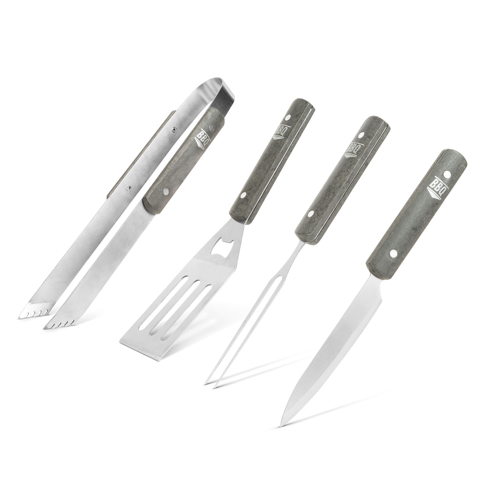 | Obsah sady: | Štipec, vidlička na mäso, lopatka, nôž |