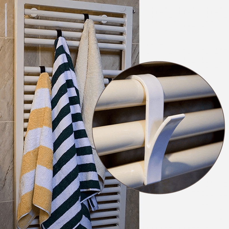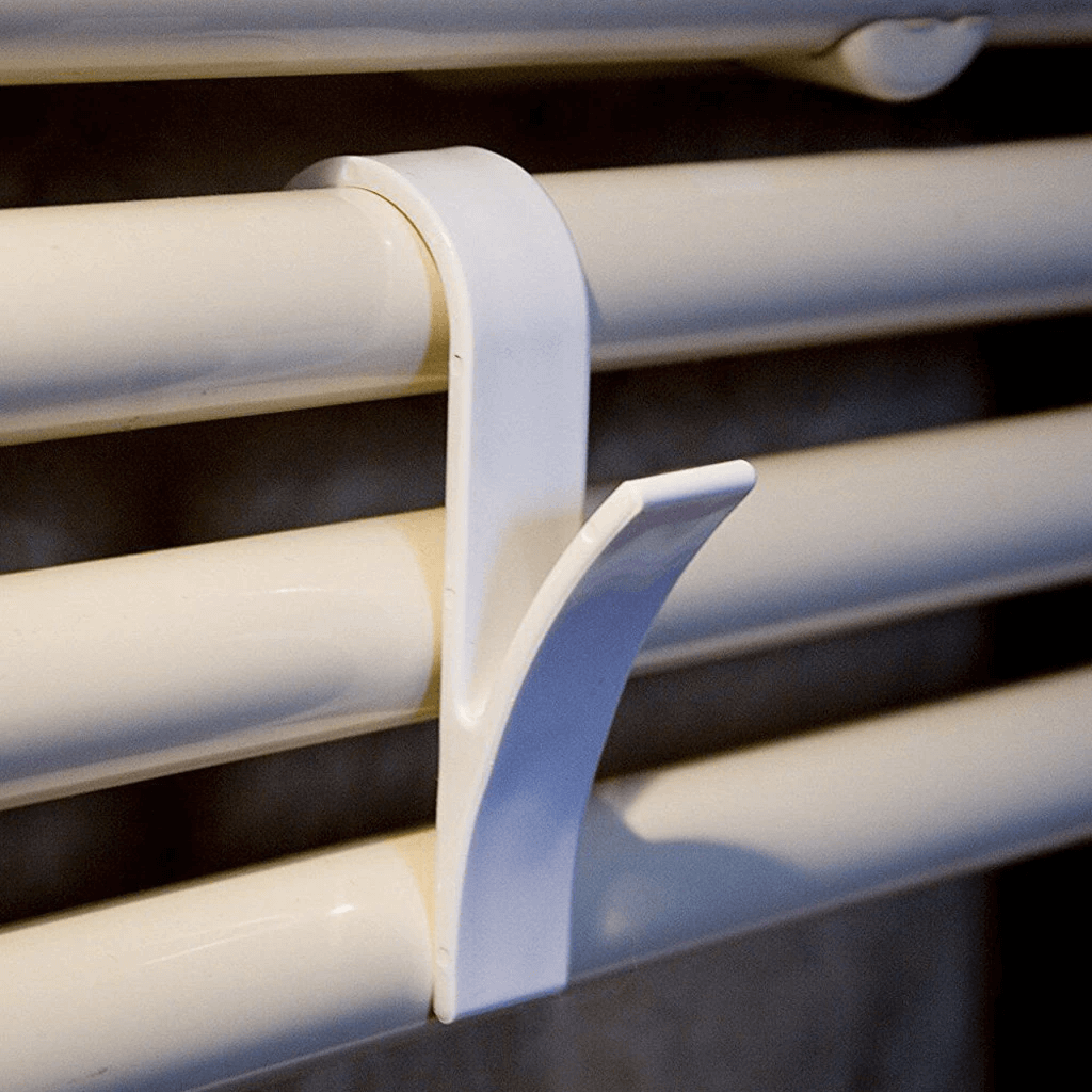 Háčiky z tvrdého plastu sa dajú ľahko pripevniť na vykurovacie rúrky sušiaka na uteráky, čím sa dá sušiť viacero kusov oblečenia súčasne.