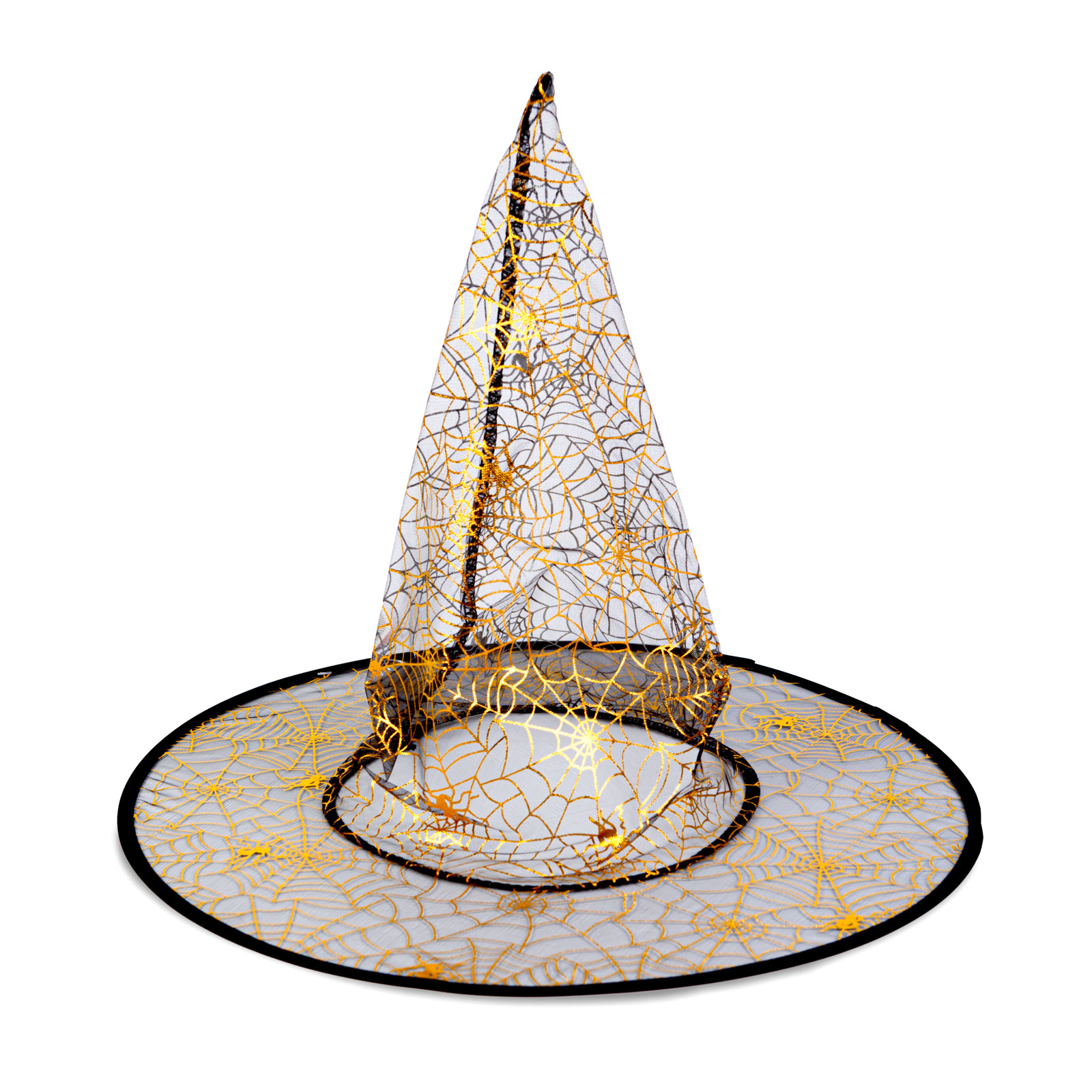 Halloweensky klobúk dostupný v 4 farbách, ktorý je výborným doplnkom každého halloweenskeho kostýmu.Vonkajšiu stranu klobúku zdobia zlaté trblietavé halloweenske motívy.
