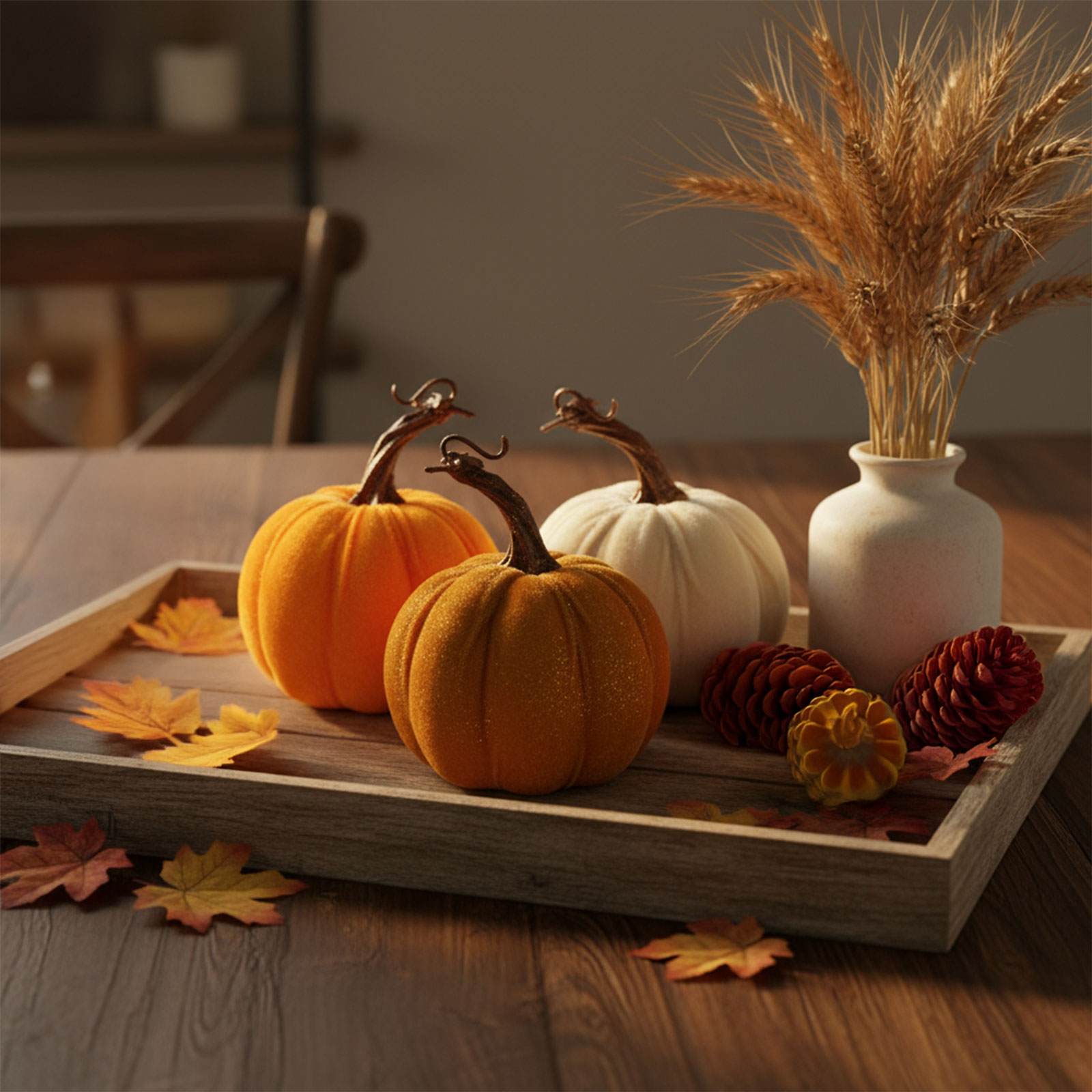Krásne dekoratívne tekvice s trblietavým, glitrovým povrchom. Ich použitie závisí len od vašej fantázie – sú skvelým dekoračným prvkom na oživenie jesenných, pochmúrnych dní. Môžete ich zakomponovať do aranžmánov alebo použiť samostatne ako dekoráciu na poličke či stole. Výborná voľba aj na oslavu Halloweenu.