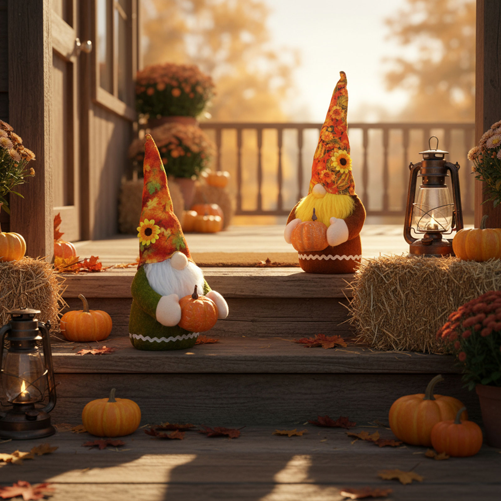 - 1ks Jesenná dekorácia - trpaslík s tekvicou - 2 druhy - 35 x 13 x 13 cm