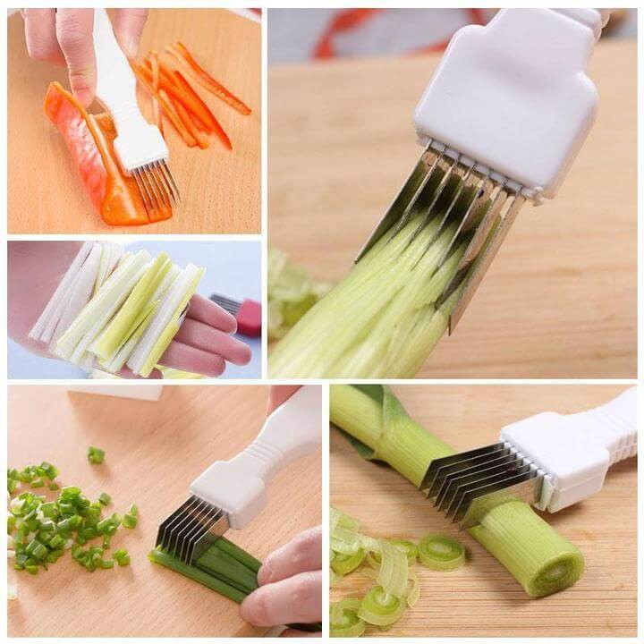 Bez komplikácií môžete nakrájať zeleninu na pravidelné kúsky. Navyše to môžete urobiť so 7 čepeľami. Dokonca aj tie najtenšie, ako napríklad pór.