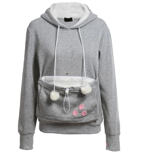 Vďaka dizajnu mikiny na nosenie mačiek sa do nej pohodlne zmestíte obaja.