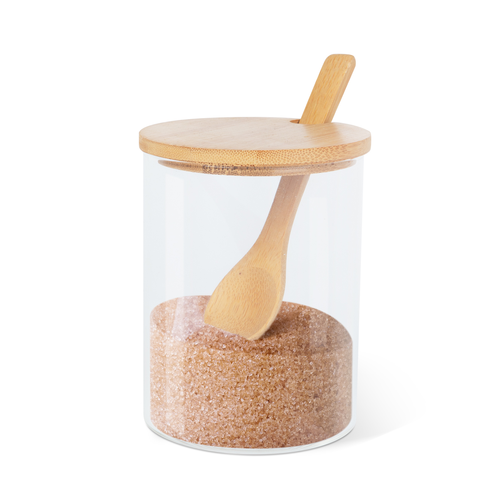 Priehľadná sklenená nádoba na korenie s dreveným viečkom a lyžičkou. Vhodné na uskladnenie akéhokoľvek korenia, soli a cukru. Vďaka priehľadnému držiaku môžete ľahko sledovať množstvo korenia a nájsť korenie, ktoré potrebujete. V prípade potreby môže byť tiež označený.