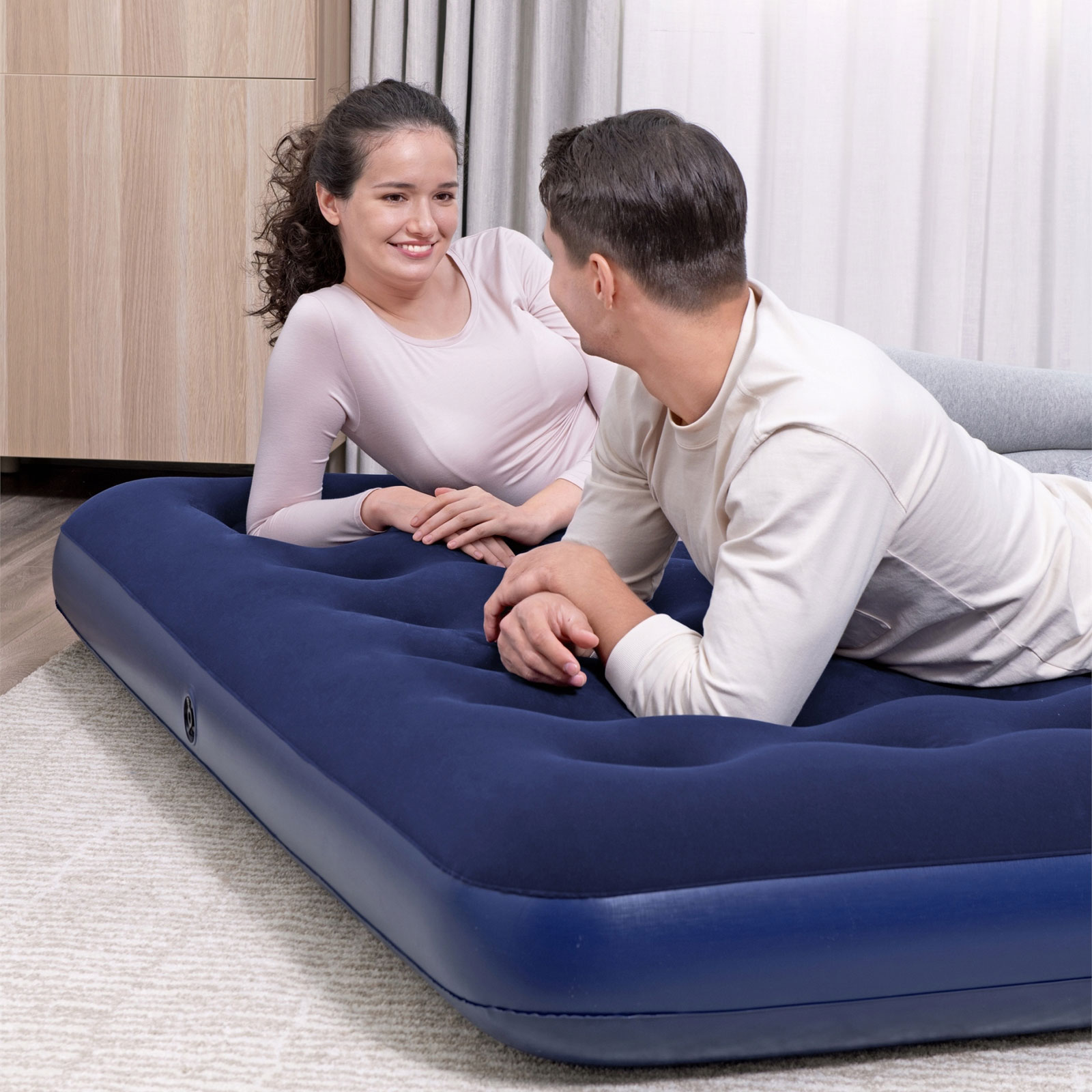 Nafukovací matrac - dvojmiestny, velúr - modrý - 203 x 183 x 22 cm