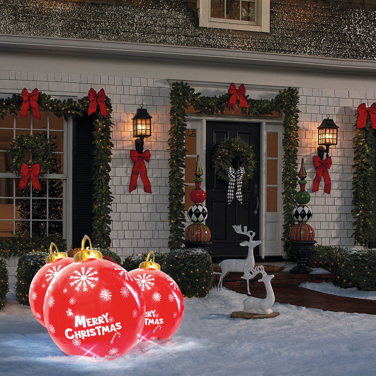Najnovšou inovatívnou dekoračnou pomôckou pre obdobie Vianoc je nafukovacia osvetlená dekoračná guľa. Vďaka svojim veľkým rozmerom ho možno umiestniť do väčších záhrad, zavesiť na stromy alebo aj dobre vyzerať na hladine bazéna. LED jednotka, ktorú je možné umiestniť na spodok dekoratívnej gule, osvetľuje vnútro gule úžasným svetlom. LED diódy sú napájané 2 x CR2450 batériami. Pomocou dodávaného diaľkového ovládača si môžete nastaviť režim osvetlenia podľa svojich predstáv.