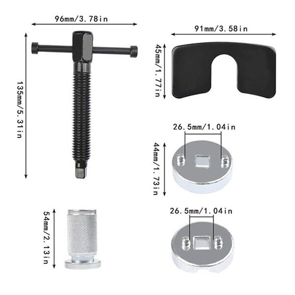 Dá sa ľahko použiť na zatiahnutie brzdových piestov, výmenu brzdových doštičiek/kotúčov, použitie bŕzd a automobilových brzdových valcov a inštaláciu bŕzd.