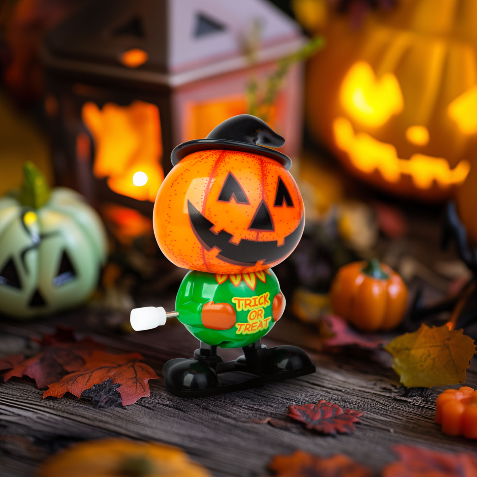 Natiahnite ju pomocou ramena, takže postavička tekvice začne chodiť a pohybovať sa. Jej pohyb je nepredvídateľný, na prevádzku nie je potrebný žiadny externý zdroj energie ani batéria.