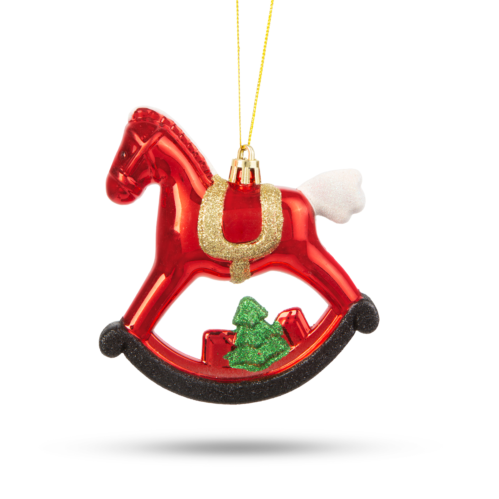 Táto špeciálna dekorácia na vianočný stromček zobrazuje lesklého hojdacieho koníka, ktorý vyzerá skvele na každom vianočnom stromčeku a vytvára u vás doma útulnú sviatočnú atmosféru. Ozdoba má špeciálny trblietavý, lesklý náter, ktorý sa krásne leskne vo vianočnom osvetlení.