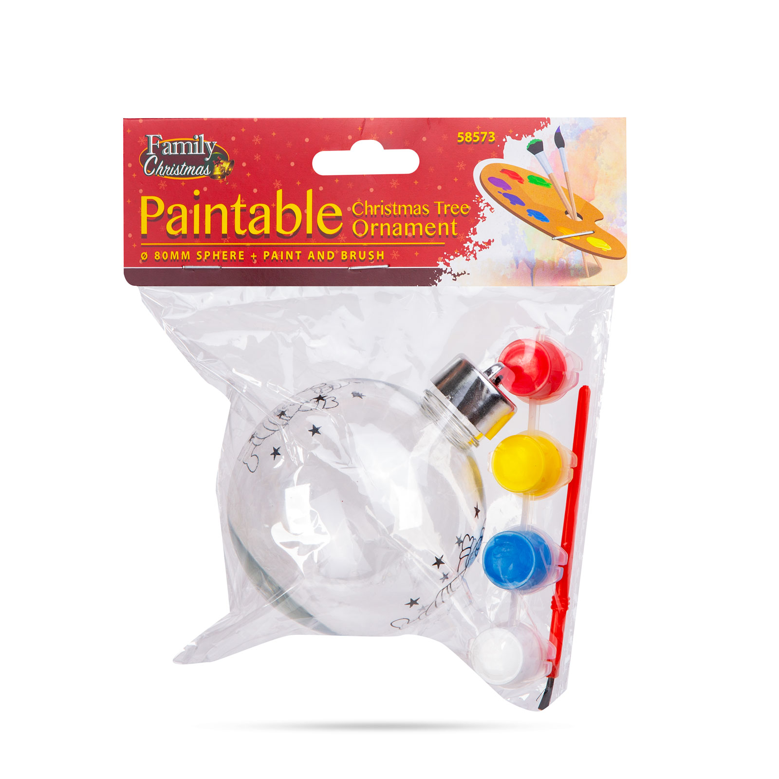Ozdoba na vianočný strom "Vymaľuj si sám" - guľa + farba a štetec - 80 mm