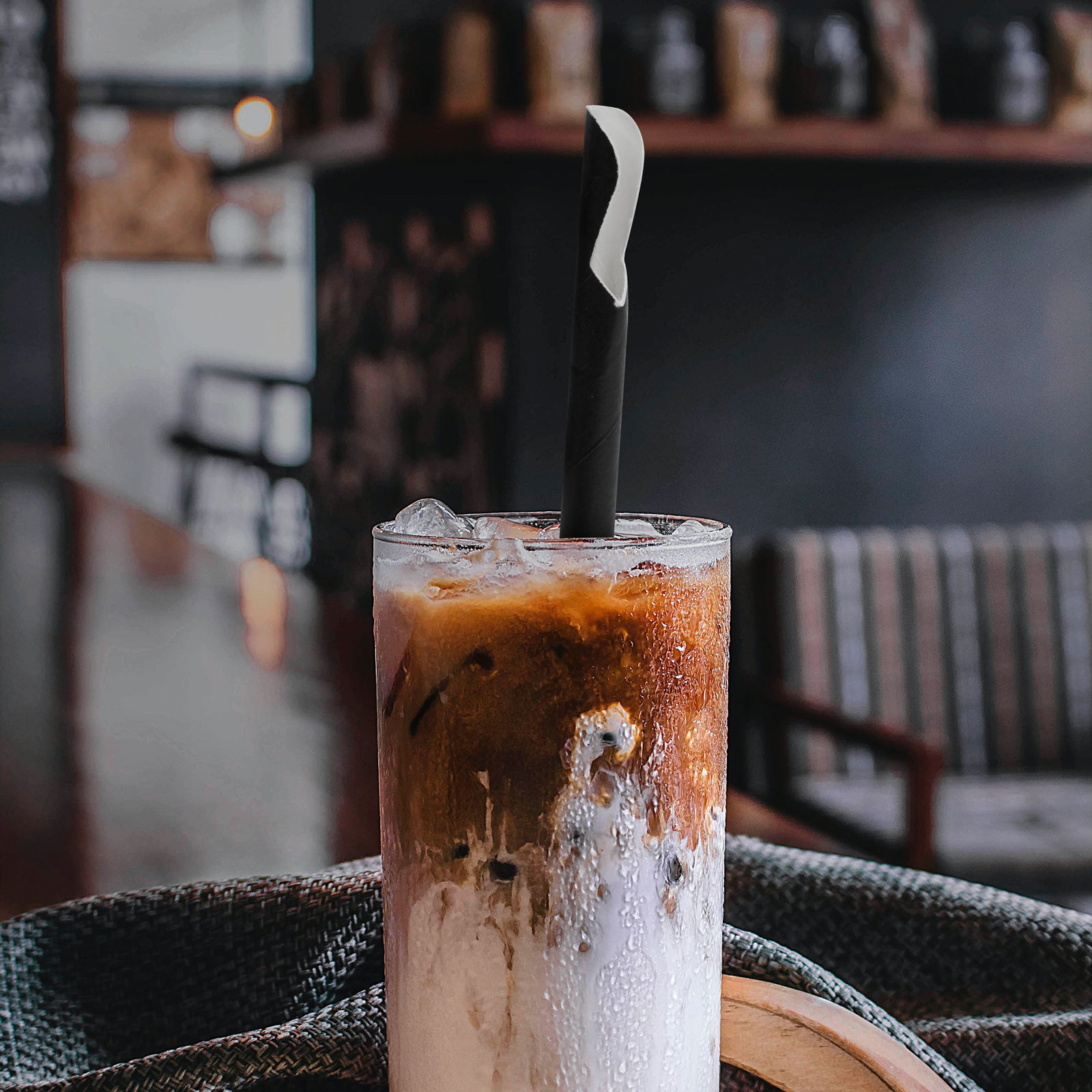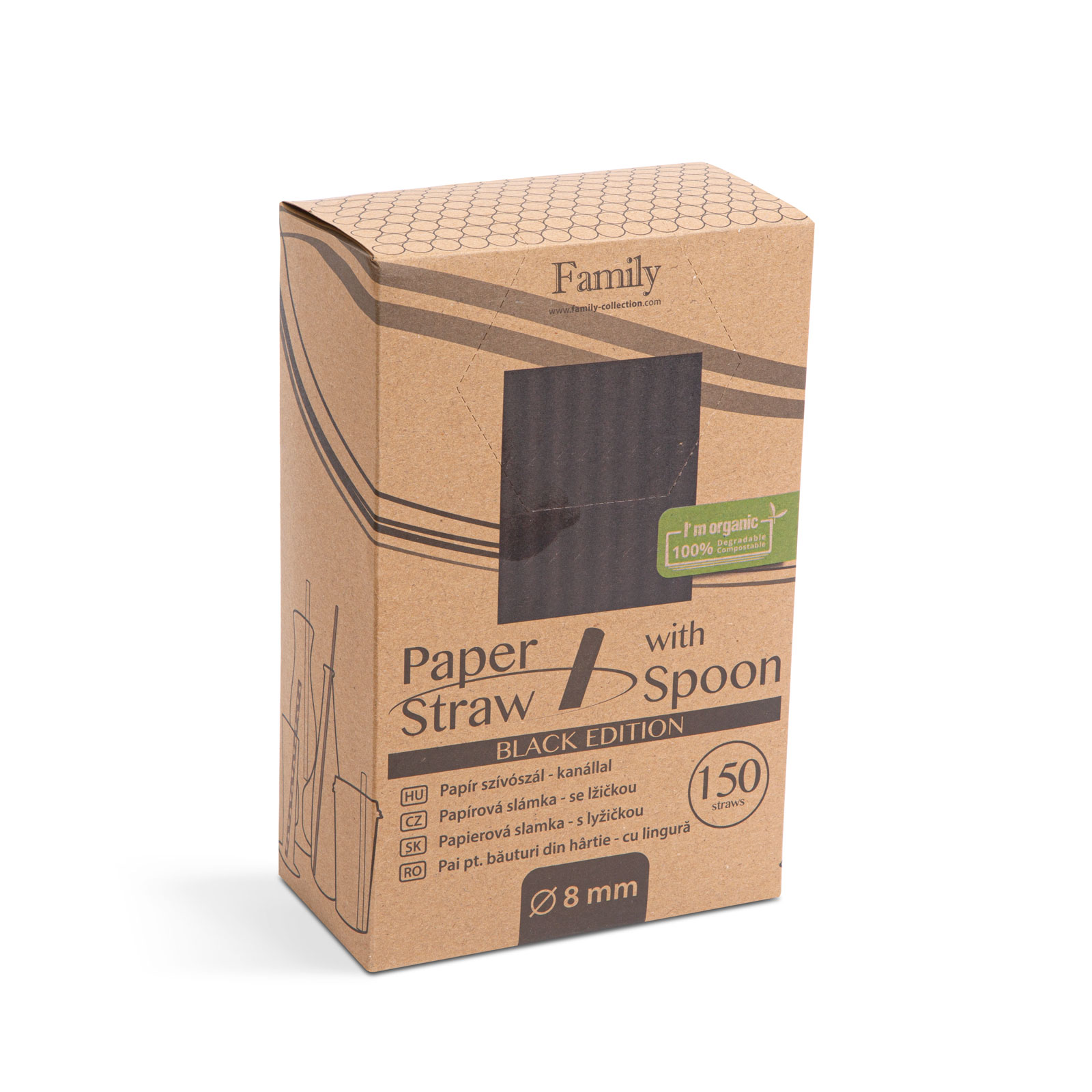 - 1ks Papierová slamka - čierna, s lyžičkou - 200 x 8 mm - 150 ks / balenie