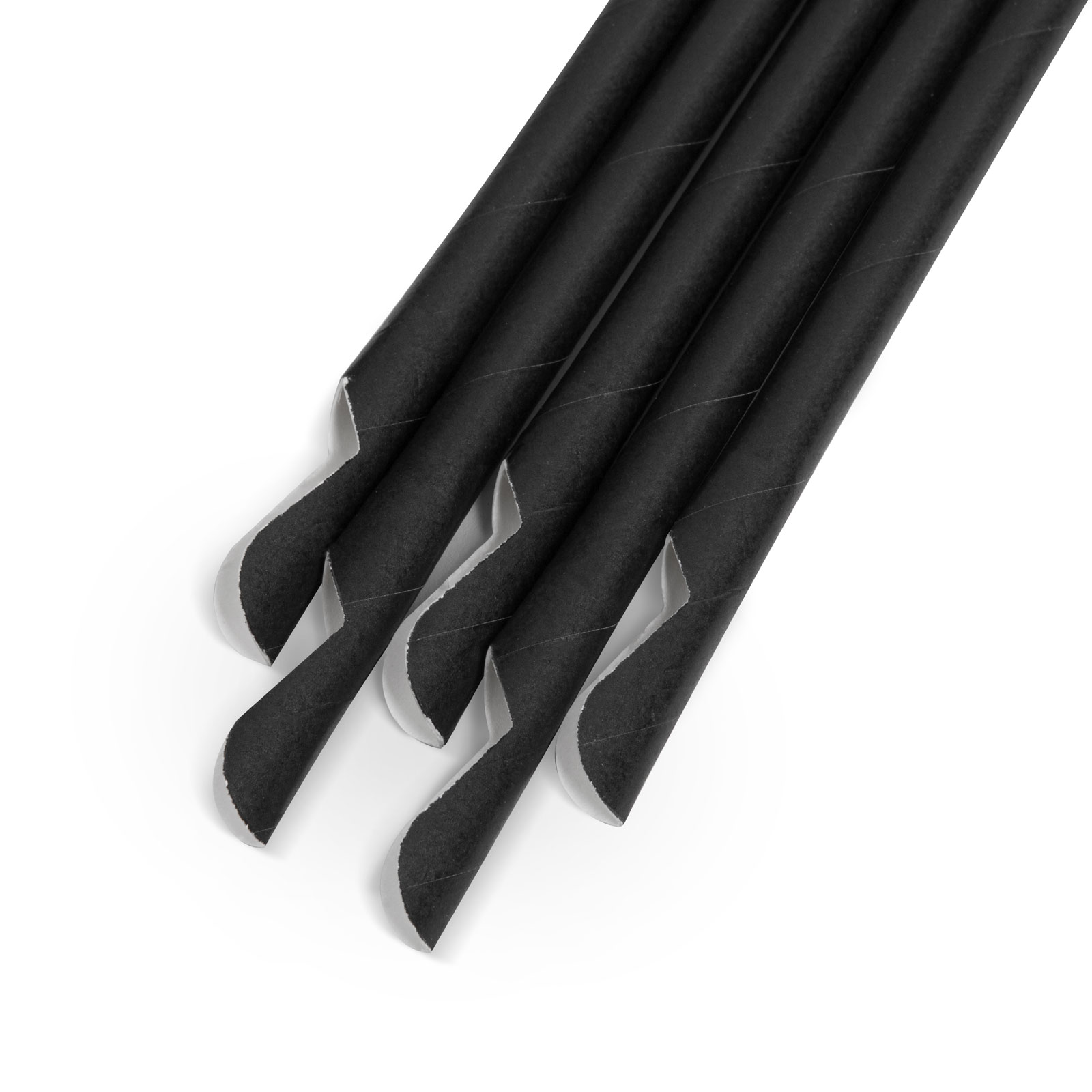 Papierová slamka - čierna, s lyžičkou - 200 x 8 mm - 150 ks / balenie