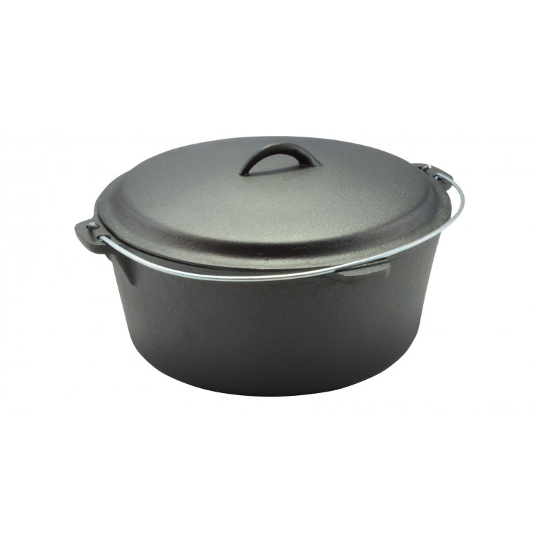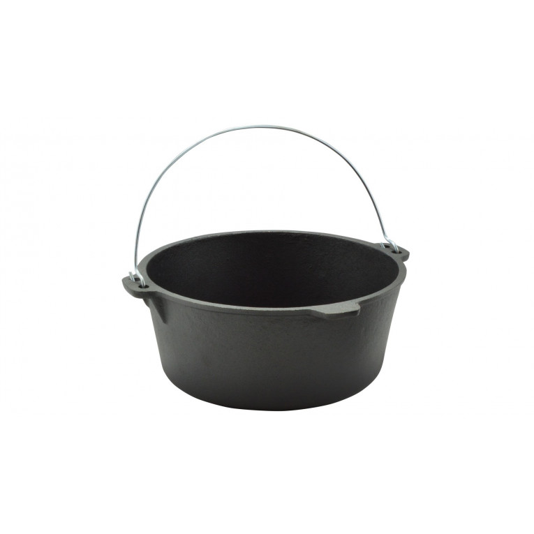 Materiál: liatina, ošetrená rastlinným olejom. Rozmery: priemer 29,5 cm; šírka 35,5 cm; výška bez pokrievky 10 cm; výška s pokrievkou 16 cm Rozmery balenia: 33,5*33,5*12,5 cm Objem: 6 litrov Hrubá hmotnosť: 8,1 kg Čistá hmotnosť: 7,5 kg Vhodné na použitie: na všetky typy varných plôch (plynové, elektrické, sklokeramické, indukčné), na otvorenom ohni, na uhlíkoch, v peci, v elektrickej a plynovej rúre Čistenie: Po každom použití umyte teplou vodou s čistiacim prostriedkom, osušte a potrite tukom, aby ste predišli hrdzaveniu. Použitie: Pred prvým použitím odstráňte z nádoby rastlinný olej, ktorý chráni pred hrdzou. Nádobu umyte v horúcej vode s neutrálnym tekutým čistiacim prostriedkom a osušte. Potom nádobu potrite tukom alebo slaninou a dôkladne zohrejte.