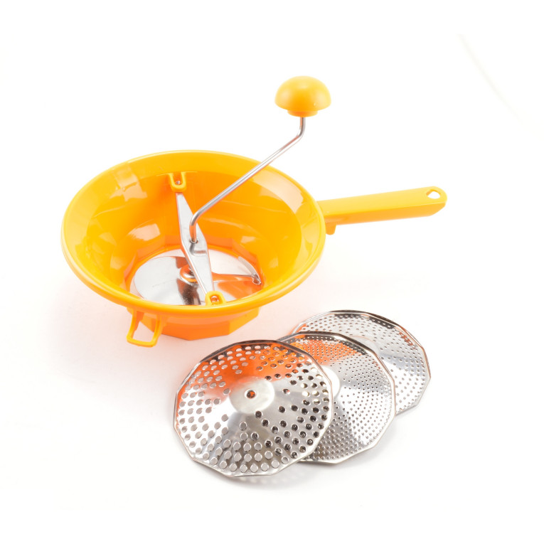 Obsah balenia: 3 ks vložiek rôznych veľkostí, 1 ks pasírovač, 1 ks miska na pasírovanie
