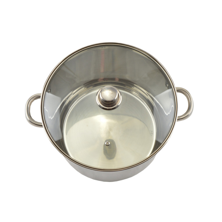 Rozmery: 30 cm vnútorný priemer, 32 cm priemer spolu s okrajom; 40 cm so držadlami, 22 cm výška, 28 cm výška s pokrievkou
