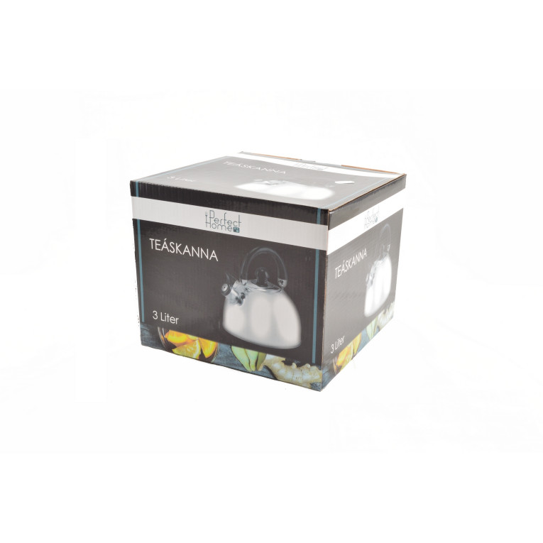 Klasická, 3-litrová, inox čajová kanvica. Vďaka nehrdzavejúcemu prevedeniu je odolná voči korózii, takže má dlhšiu životnosť ako tradičné kanvice. Ľahko sa čistí zvonku aj zvnútra. Privedenie vody do varu signalizuje pískaním.