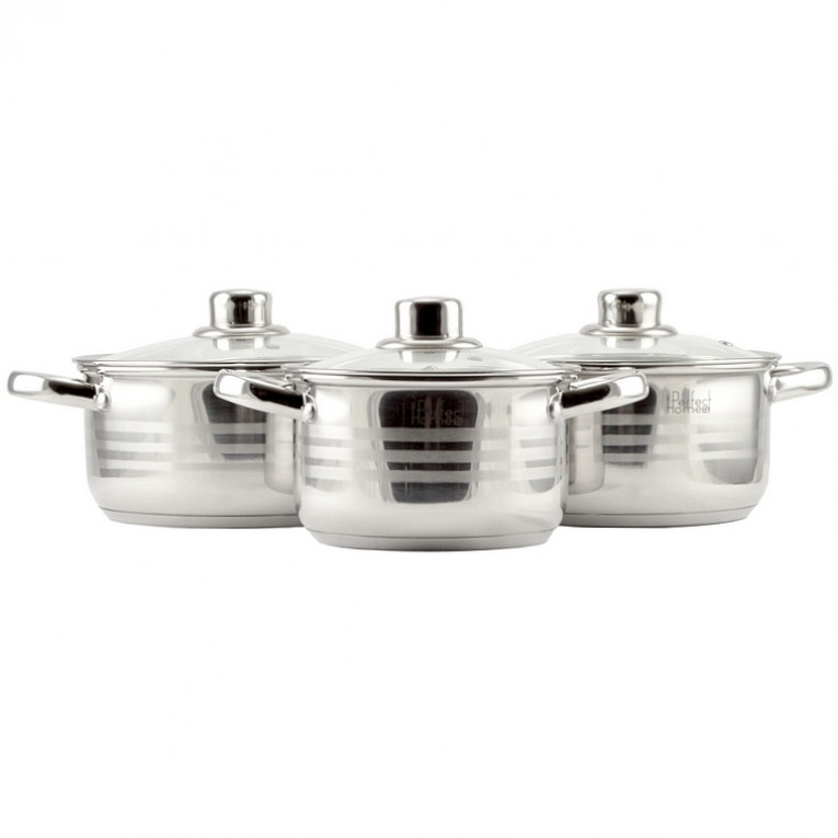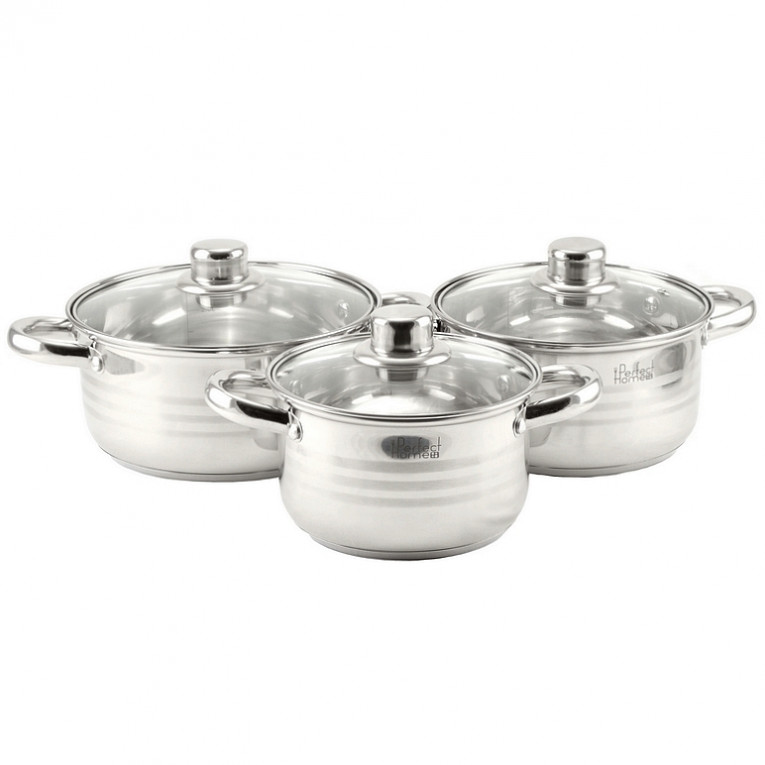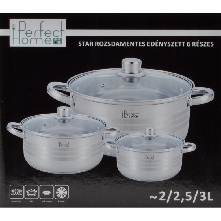 Obsah balenia: 3 ks hrncov rôznych veľkostí, 3 ks sklenených pokrievok