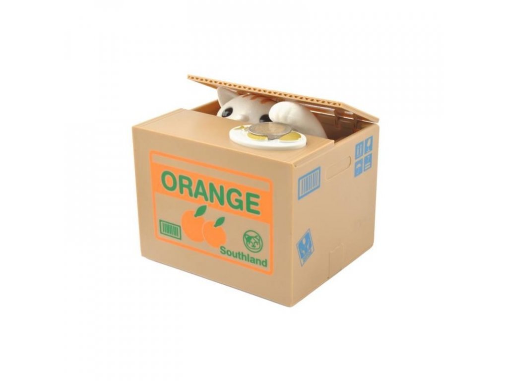 Stačí položiť mincu na určené miesto, tak že stlačíte tlačidlo a mačička ju pekne vtiahne do krabičky a navyše poďakuje!