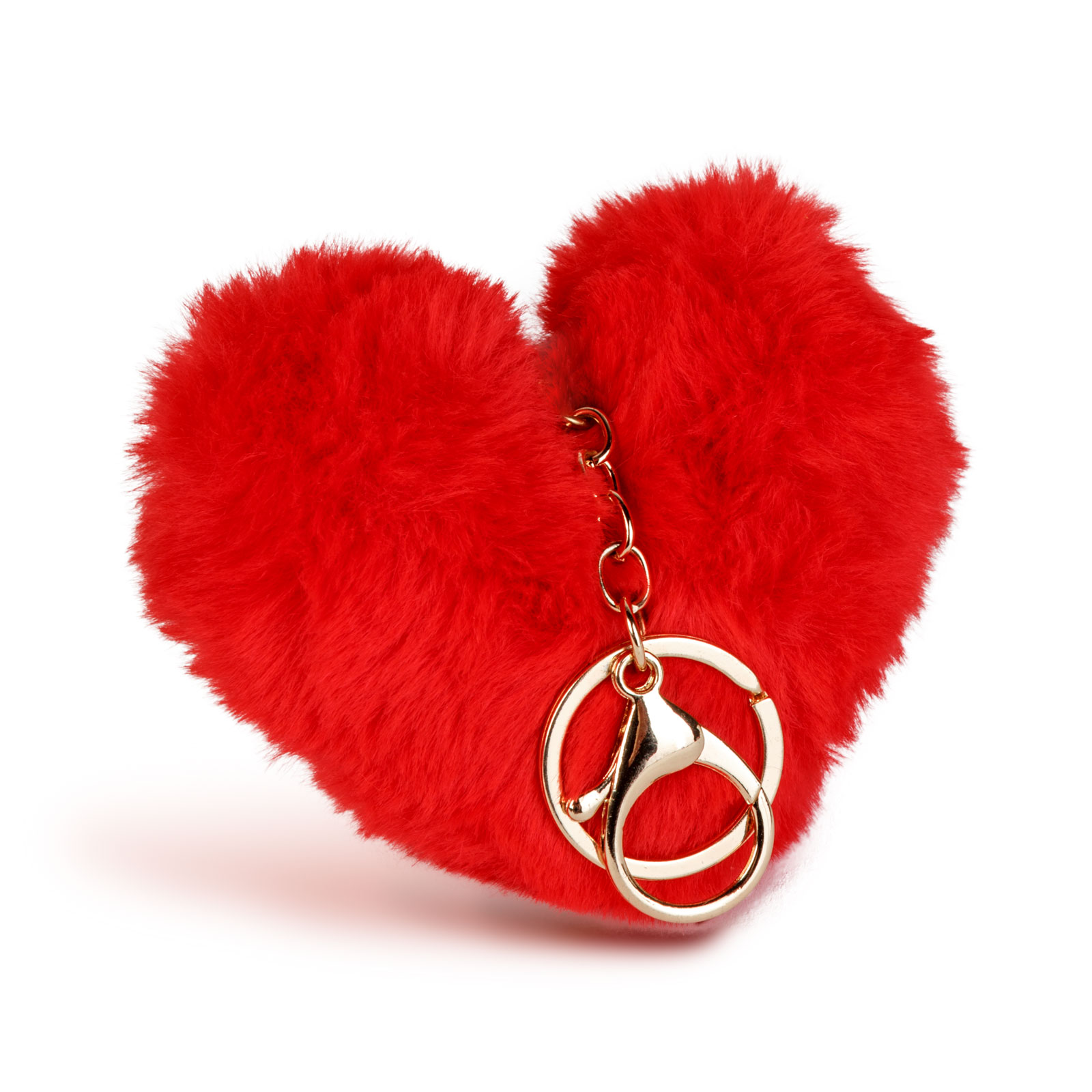 Prívesok na kľúče - v tvare srdca - plyš, červený - 13 x 10 cm