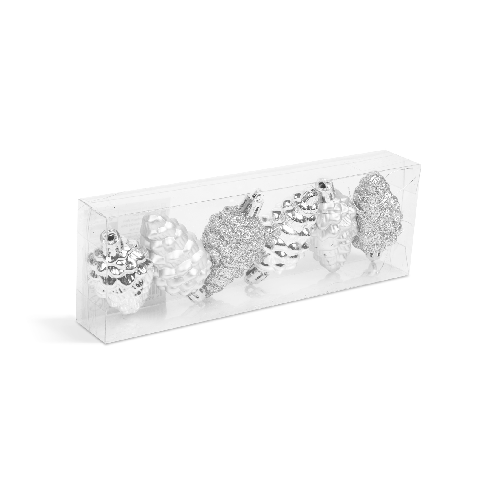 Sada ozdôb na vianočný strom - strieborná šiška - 6 cm - 6 ks / sada
