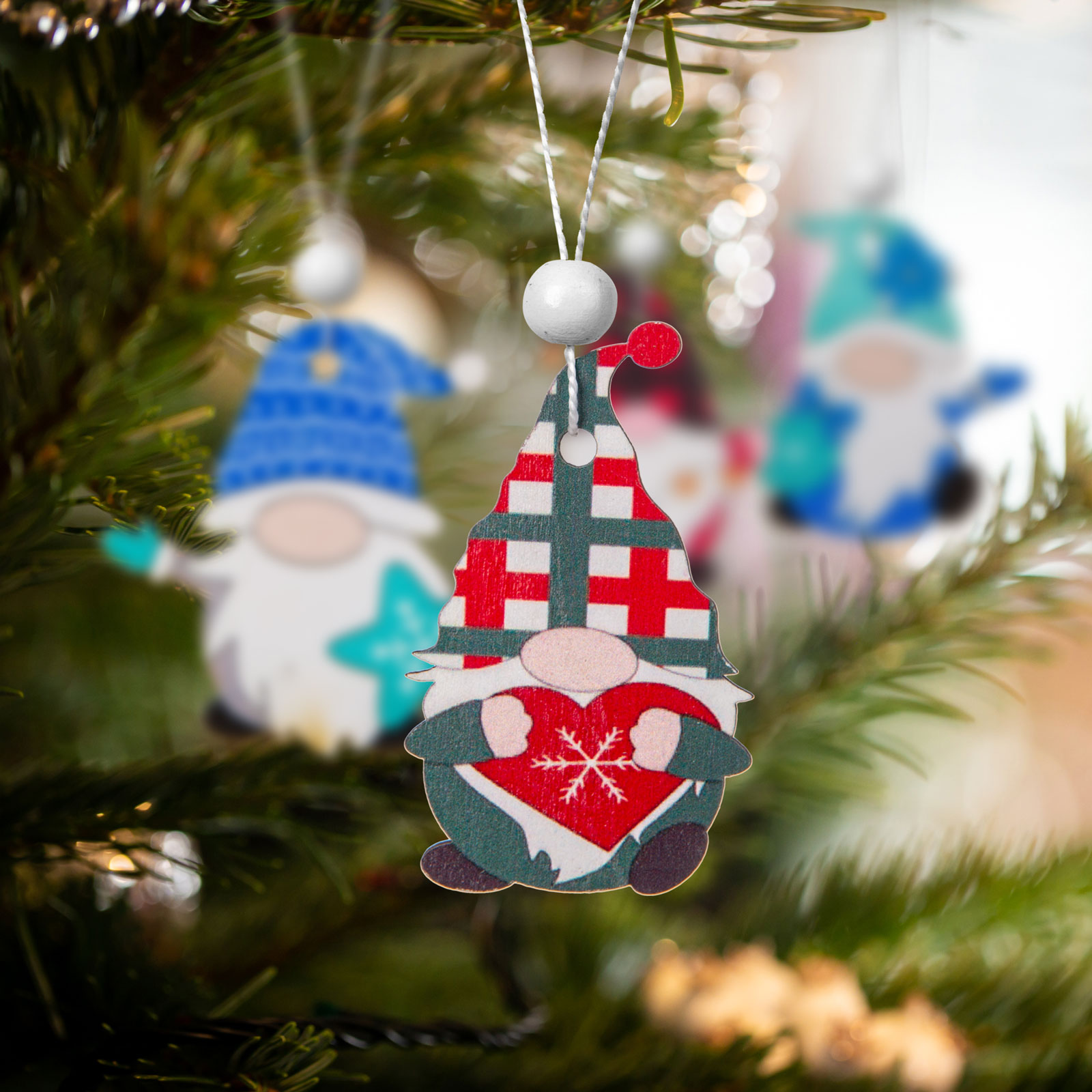 Roztomilá súprava na vianočný stromček vyrobený z dreva. Vytvorte útulnú atmosféru, ozdobte svoj vianočný stromček ozdobami z prírodných materiálov. Maľované, celkom 12ks , štyri druhy figúrok škandinávskych škriatok v jednom balení.
