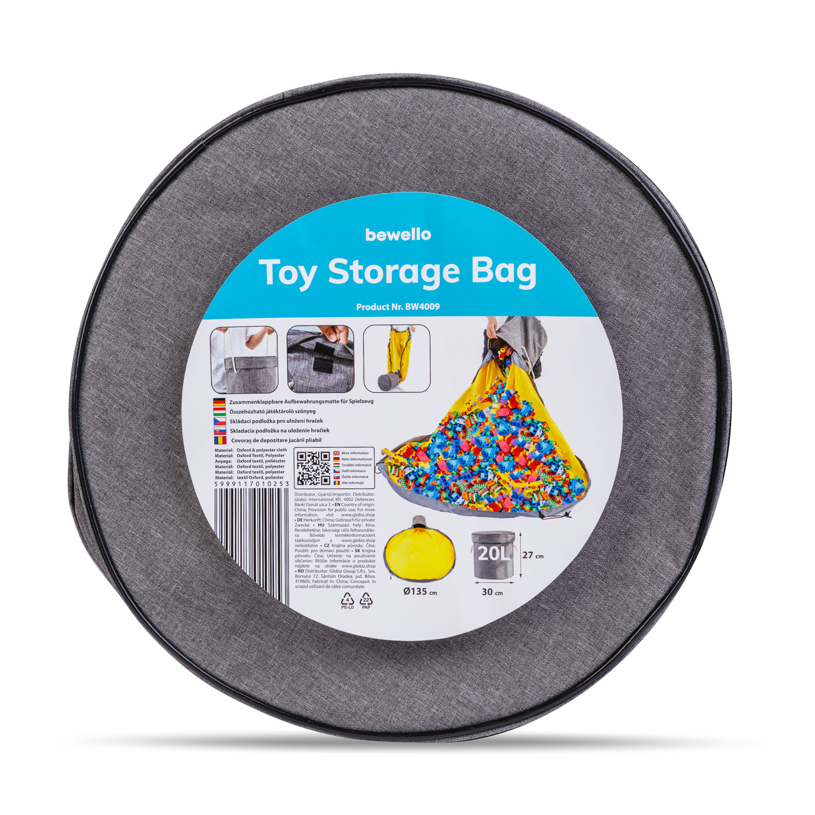 Praktický detský koberec na hranie , ktorý je vhodný na skladovanie rôznych hračiek. Košík má priemer 30 cm , takže hračky môžete vybrať a uložiť jednoducho.Na veľkom koberci sa zmestí veľa hračiek. Koberec je vyrobený z odolného oxford textilu a polyestru.Je vhodný na uloženie kociek, malých autíčok, bábik alebo iných hračiek.