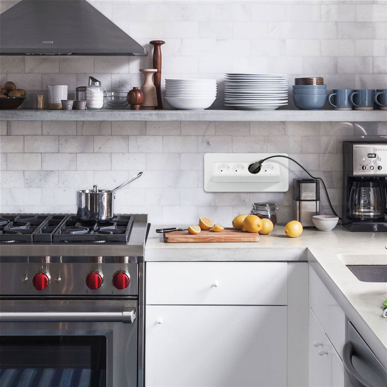 Zápustná zásuvka na kancelárske a domáce použitie s matným bielym povrchom a 4 zásuvkami s detskou poistkou. Váš stôl a nábytok budú vždy elegantné a usporiadané, no zároveň funkčné. Skrytá zásuvka je výborným riešením napríklad do už zariadenej kuchyne, kde nie je dostatok zásuviek na požadovanom mieste. V takomto prípade môže byť zápustná zásuvka skvelou alternatívou bez sekania do stien a rozširovania elektroinštalácie. Jediným pohybom máte k dispozícii 4 voľné zásuvky. Ideálne pre spotrebiče, ktoré nepoužívame nepretržite – hriankovač, rýchlovarná kanvica... Keď sa nepoužívajú, „flip-up“ zásuvku možno jedným pohybom skryť, čím sa uľahčí napríklad upratovanie a zároveň sa priestoru dodá čistý, upravený vzhľad.