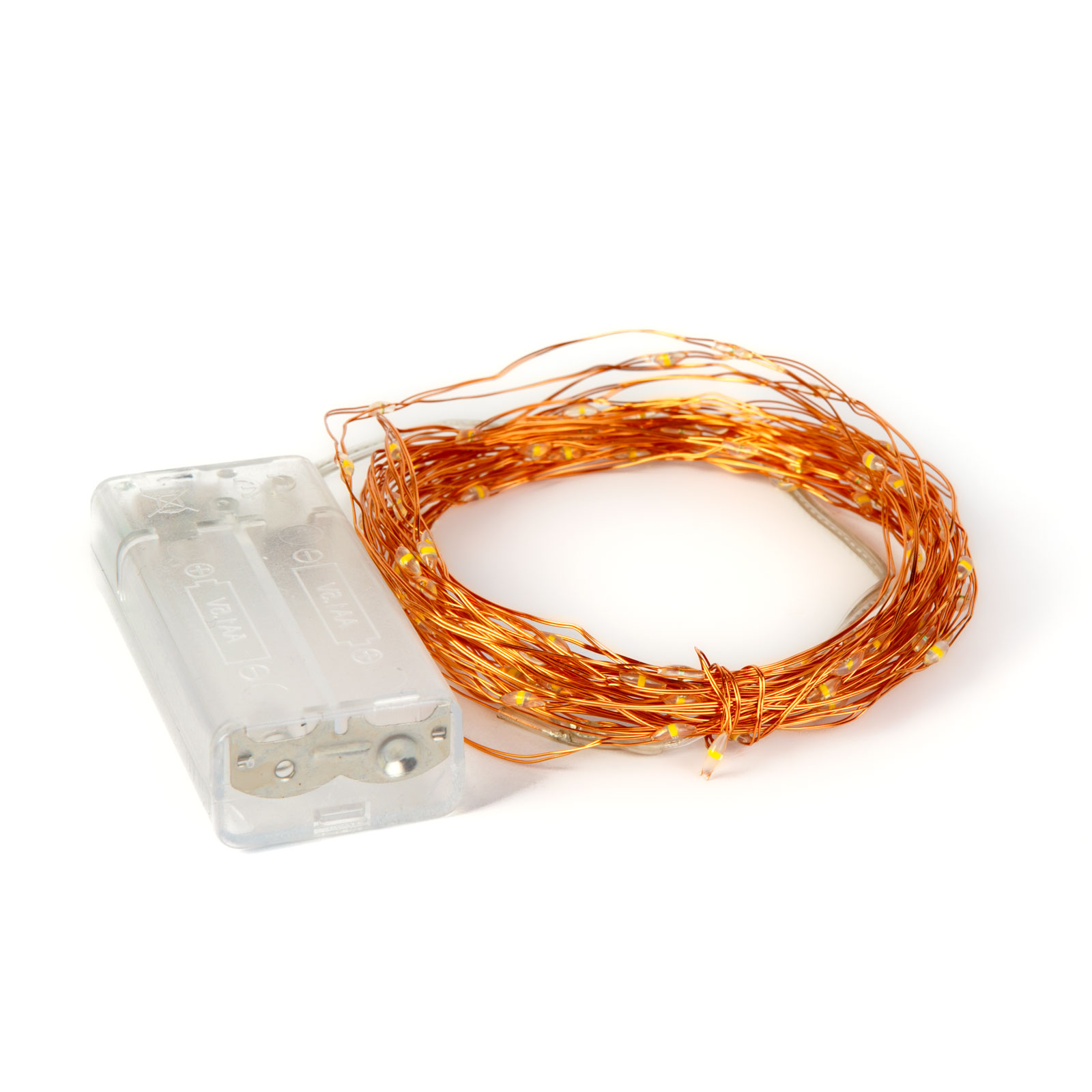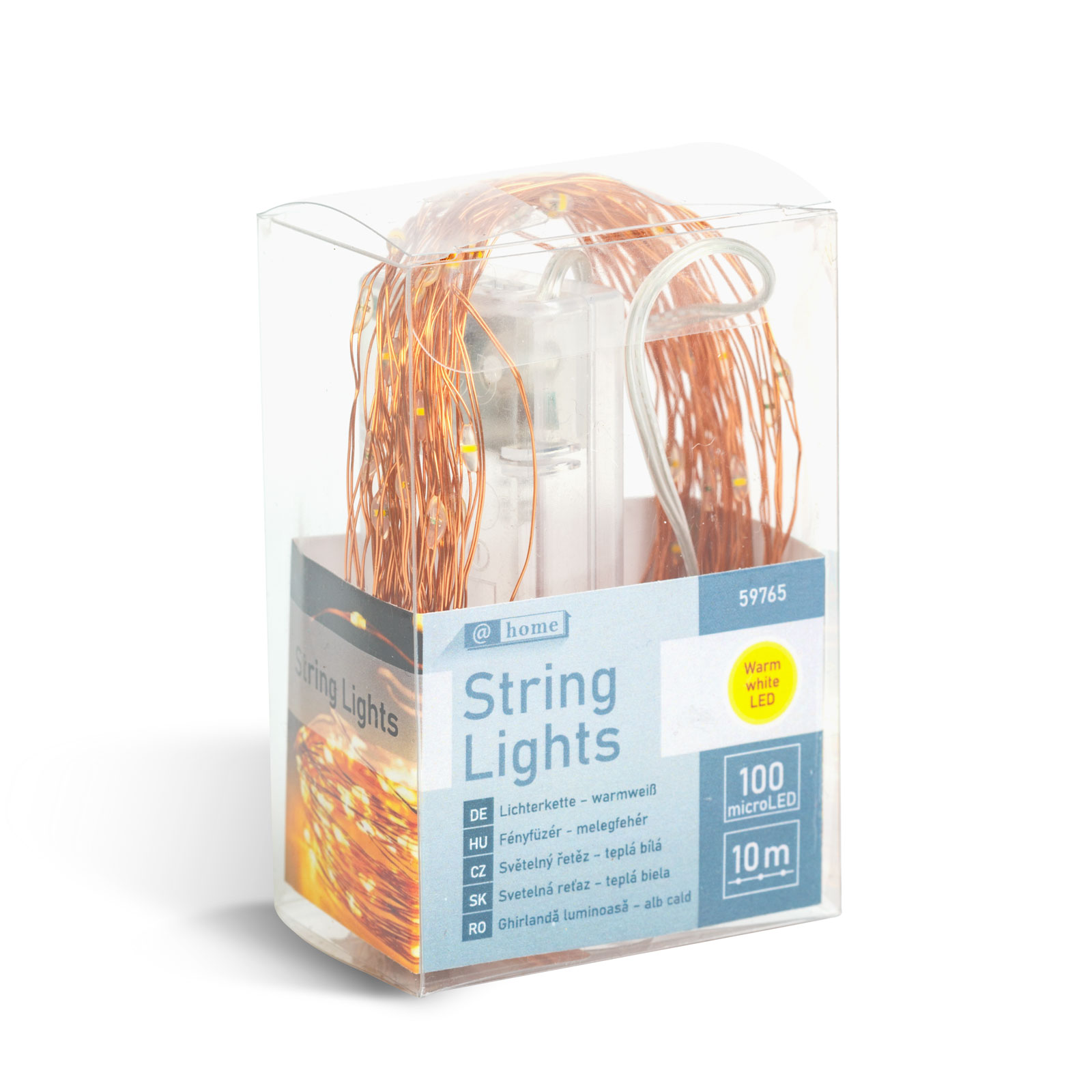 Svetelná reťaz – teplá biela – 100 x microLED – 10 m – 2 x AA