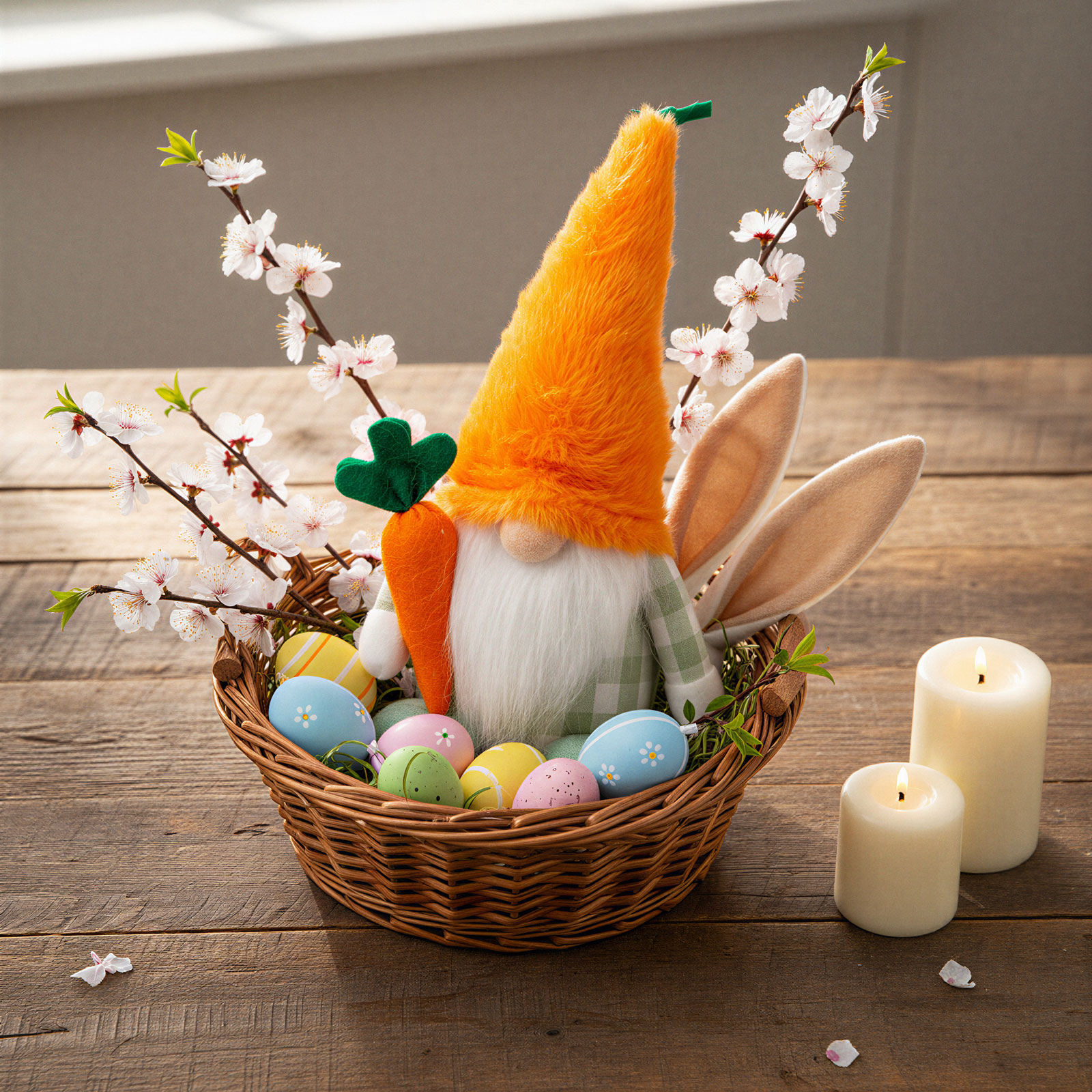 Tento očarujúci textilný škriatok je ideálnou voľbou ako veľkonočná alebo jarná dekorácia, ktorá vytvorí veselú a priateľskú atmosféru vo vašej domácnosti či kancelárii. Škriatok so žiarivo oranžovou mrkvovou čiapkou a malou textilnou mrkvou v ruke dodáva jedinečný a výnimočný vzhľad.