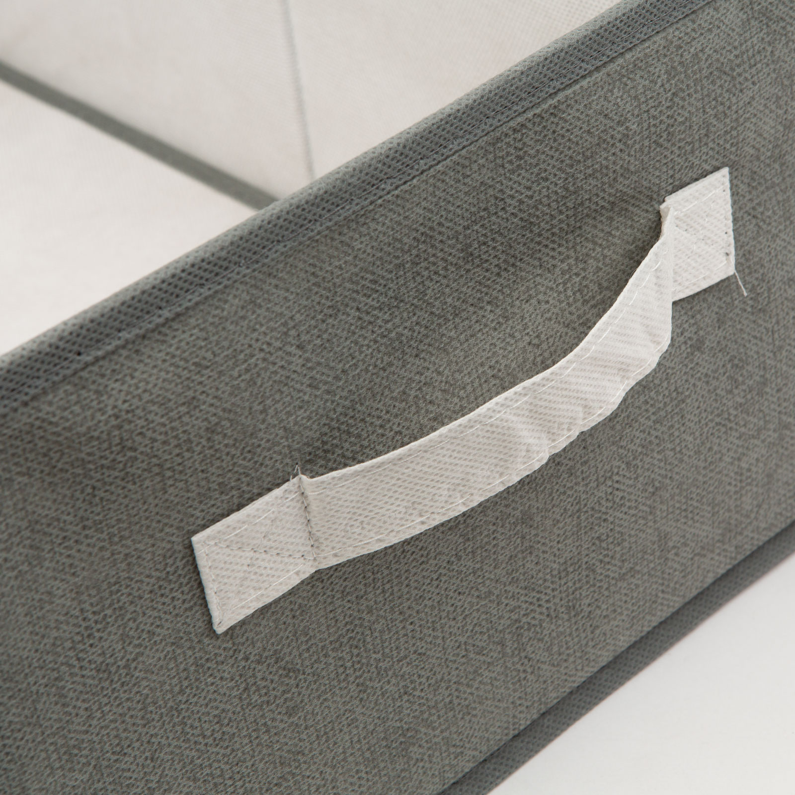 Úložný box z textilu môže byť perfektnou voľbou na prehľadné uloženie oblečenia, topánok, hračiek, kníh alebo akéhokoľvek iného predmetu. Pri nepoužívaní zaisťuje uloženie na malom priestore zips umiestnený v spodnej časti, ktorý je možné pri otvorení zapnúť.