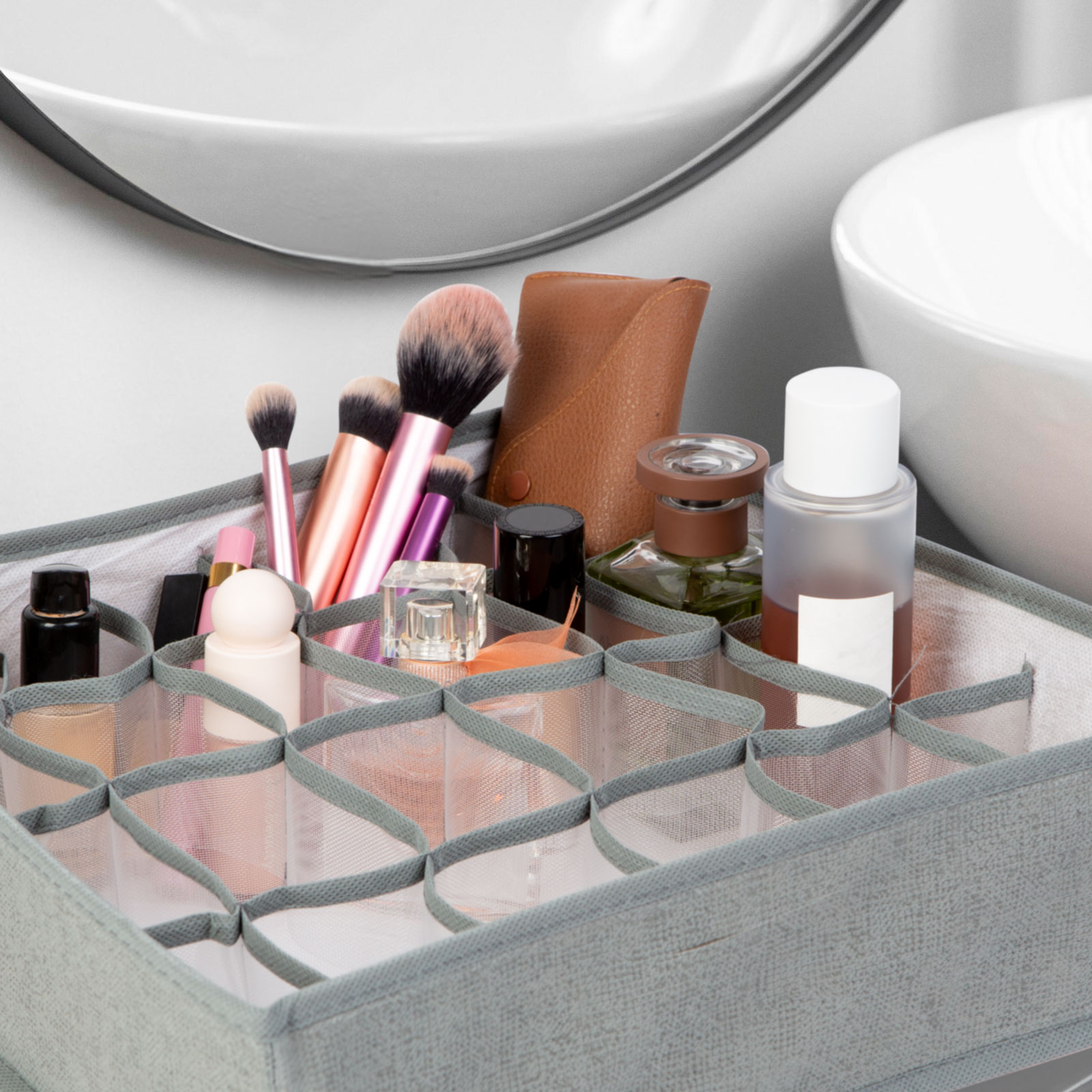 Úložný box z textilu - 32 x 32 x 10 cm - 24 kapsí - sivý