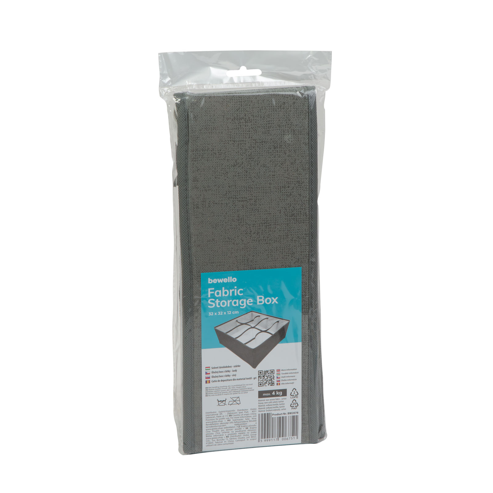 Úložný box z textilu - 32 x 32 x 12 cm - 8 kapsí - sivý