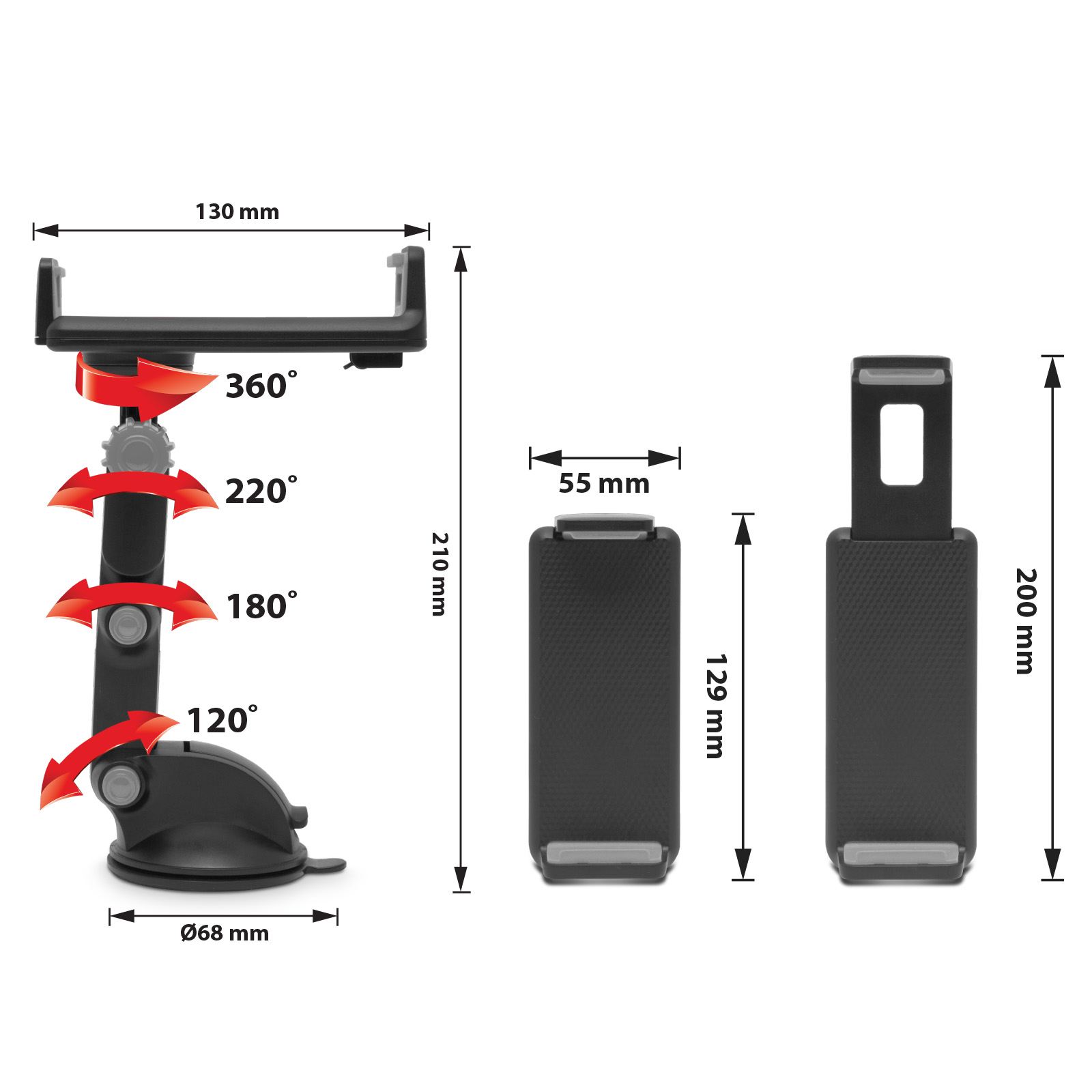 Vhodný pre telefóny, GPS, tablety a pod., nastaviteľná veľkosť: 12 - 18 cm.