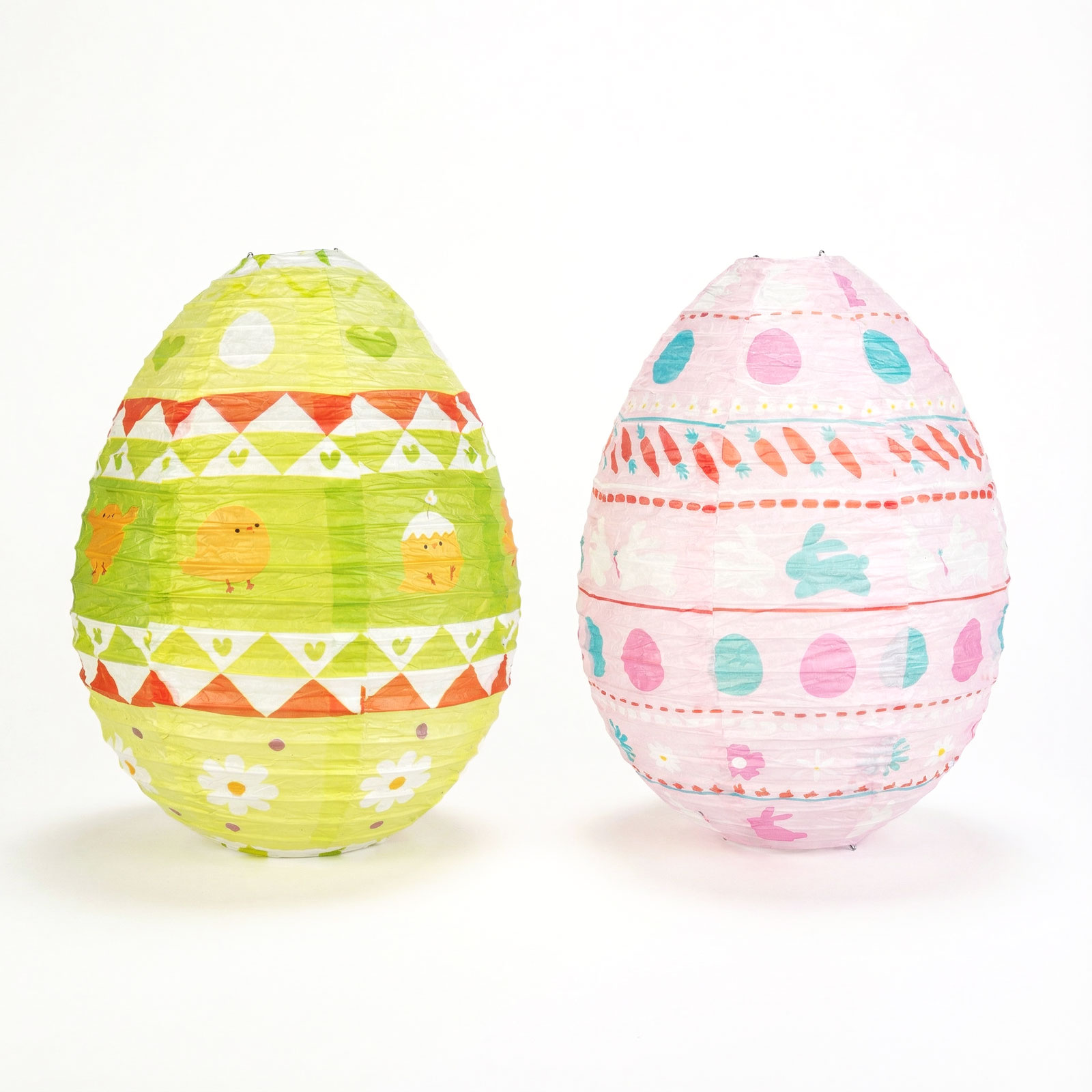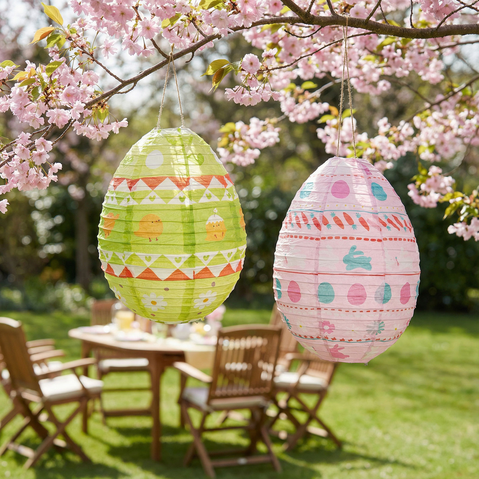 Oživte svoj domov týmto pôvabným, vajíčkovým veľkonočným lampiónom! Farebný papierový lampión s veselými jarnými motívmi (zajačiky, kuriatka, kvety, vajíčka) je skvelou voľbou ako veľkonočná dekorácia do interiéru alebo na krytú terasu. Je ľahký, praktický a rýchlo sa skladá, vďaka čomu je ideálnym doplnkom jarných párty, sviatočných stolov alebo okenných dekorácií. Dostupný v dvoch farbách: zelenej a ružovej.