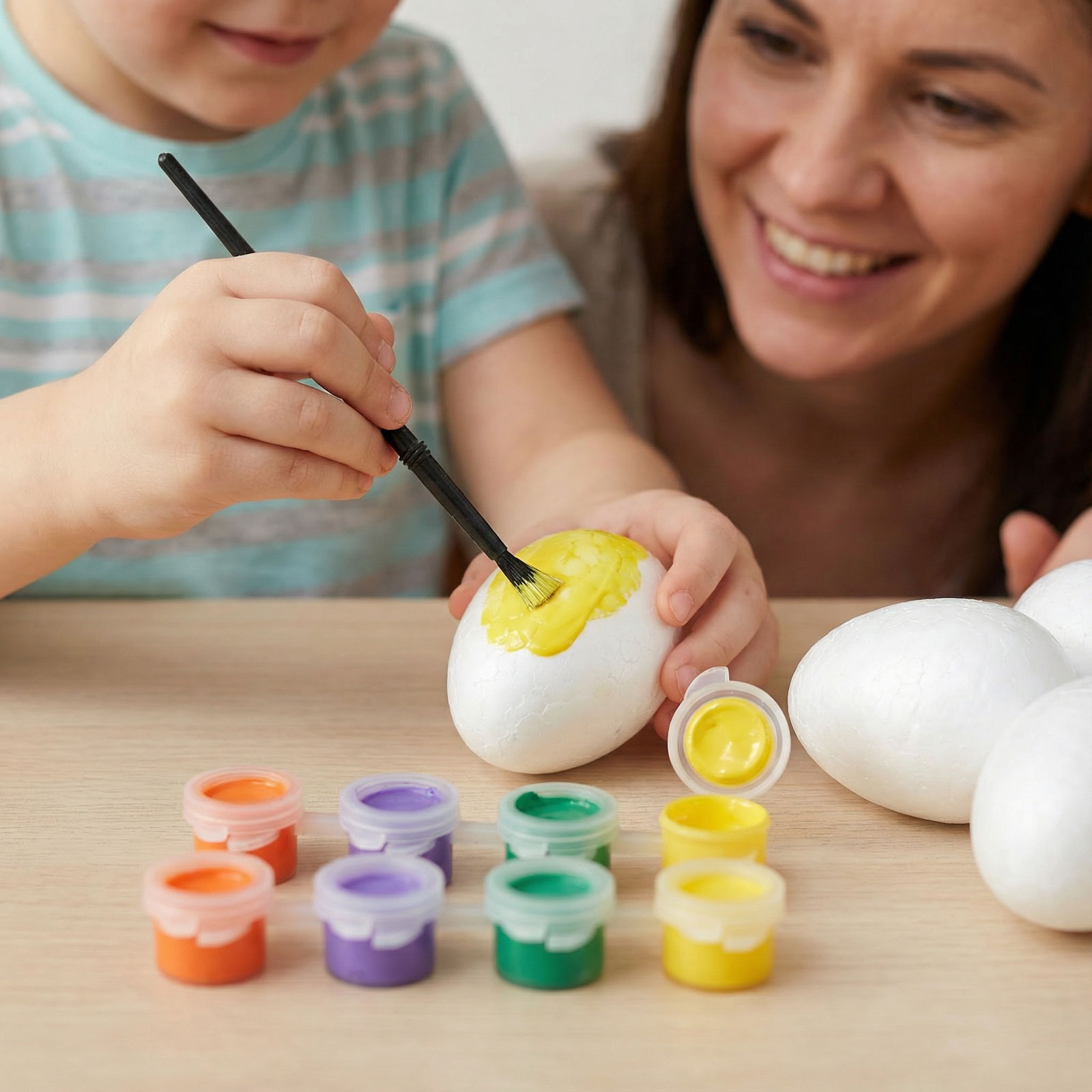 Vytvorte kreatívnu veľkonočnú atmosféru s touto farebnou maľovacou sadou! Sada obsahuje 6 bielych penových vajíčok, ktoré si môžete ozdobiť podľa vlastného vkusu. Súčasťou balenia je štetec a 8 rôznych farieb. Organza vrecko poskytuje praktické a dekoratívne balenie, takže je ideálnou voľbou aj ako darček. Skvelé pre veľkonočné tvorivé dielne, rodinné aktivity alebo prípravu sviatočnej dekorácie.