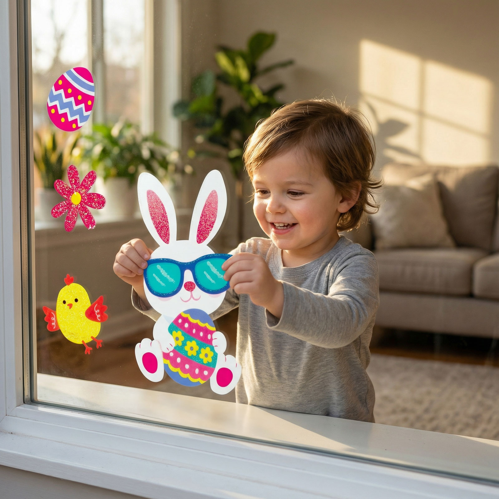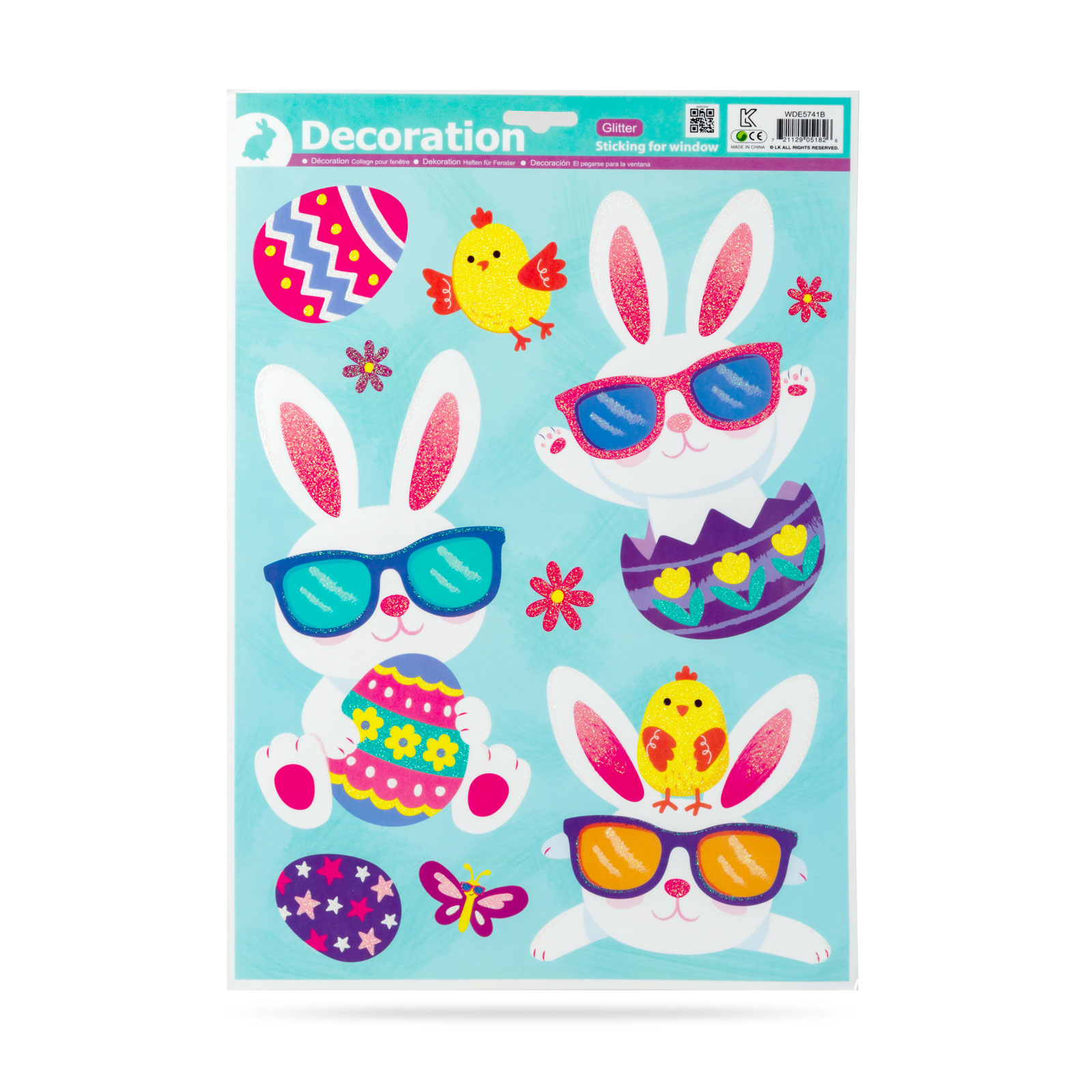 Zútulnite svoj domov počas veľkonočných sviatkov s touto trblietavou okennou nálepkou! Obsahuje hárok s rozmermi 43 × 30 cm, na ktorom sú zobrazení farební zajačikovia, kvety a vajíčka. Nálepky sa dajú ľahko pripevniť na sklenené povrchy, okná či zrkadlá a rovnako jednoducho ich možno aj odstrániť. Vďaka trblietavým detailom vytvárajú obzvlášť príjemný svetelný efekt, preto sú ideálnou voľbou na sviatočnú dekoráciu, do detskej izby alebo obývačky.