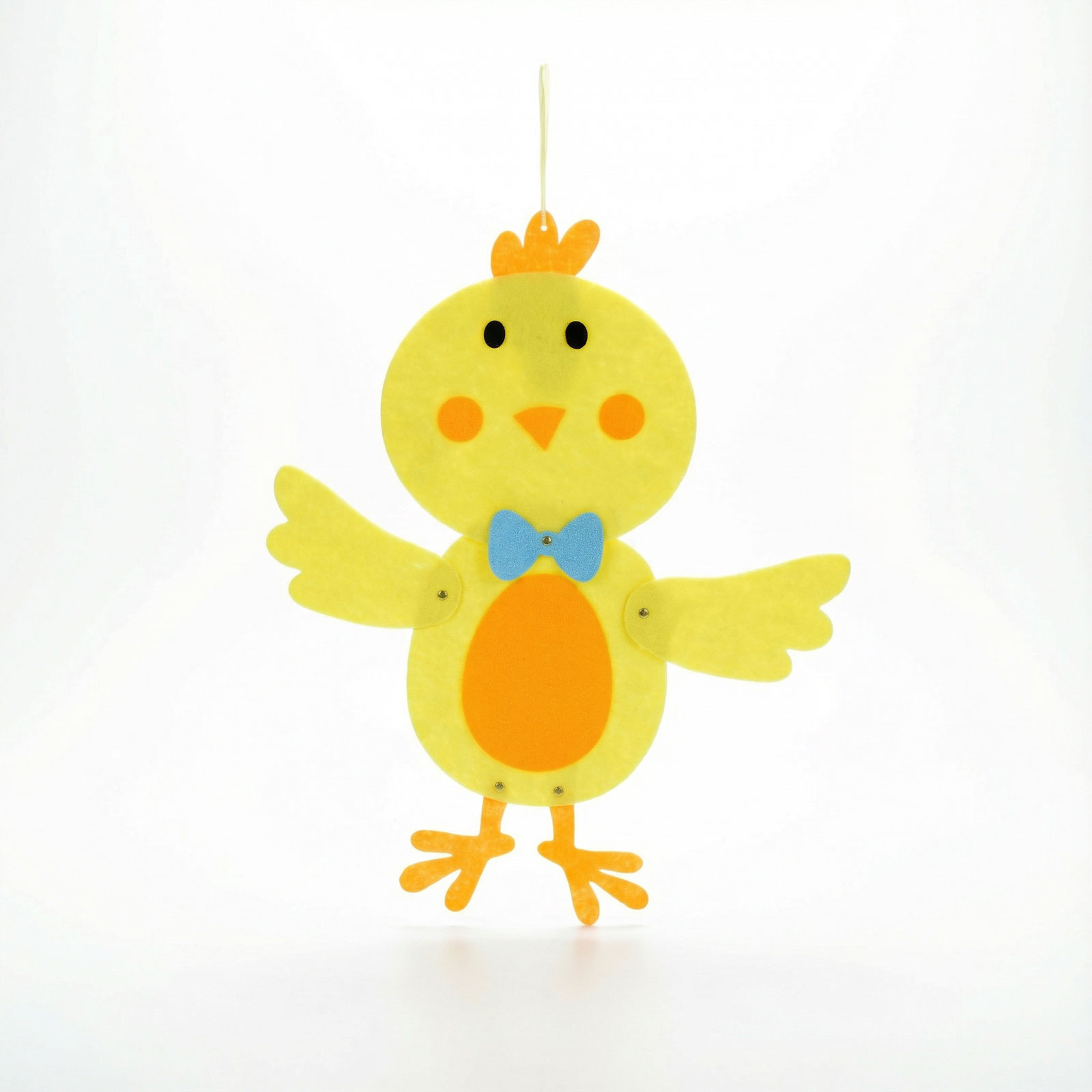 Vneste do svojho domova jarnú atmosféru s touto rozkošnou veľkonočnou kuriatkou! Závesná dekorácia z filcu v žiarivo žltej a oranžovej farbe s veselou mašľou rozžiari každú miestnosť. Jednoducho sa dá zavesiť na dvere, stenu, okno alebo aj do detskej izby. Ideálna voľba na veľkonočnú výzdobu, sviatočné aranžmány alebo ako doplnok k darčeku.