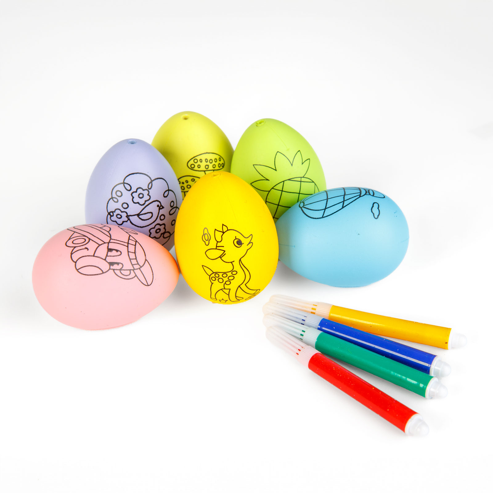 Veľkonočné maľovateľné vajíčka so 4 fixkami – 6 farebných vajíčok – 6 cm
