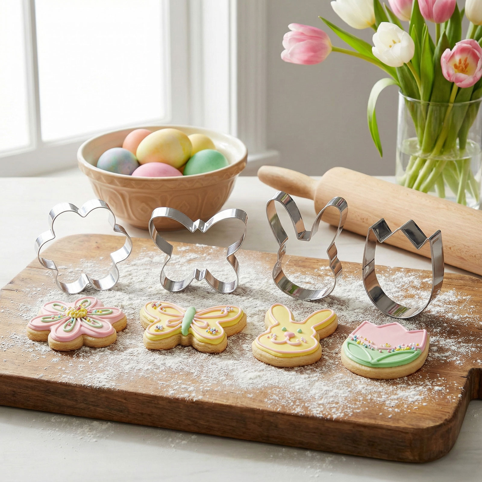 Pripravte si tie najveselšie veľkonočné koláčiky s touto praktickou sadou vykrajovačiek! Balenie obsahuje 4 kovové vykrajovače s rôznymi veľkonočnými motívmi: zajačik, motýľ, kvet a vajíčko. Nerezové prevedenie zaručuje dlhú životnosť, vďaka čomu môžete formičky používať dlhé roky. Ideálna voľba na prípravu sušienok, medovníkov, fondantu alebo iných dezertov. Perfektný nástroj na rodinné pečenie, veľkonočné prípravy a kreatívne chvíle v kuchyni.